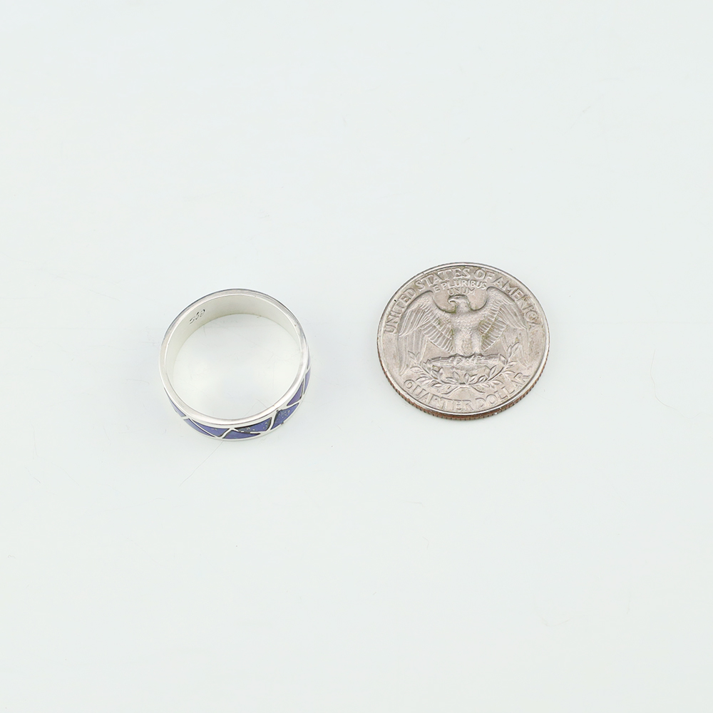 Zuni jewelry makers, Nancy and Sheldon Westika created this magnificent ring. Made out of sterling silver and inlaid with natural Lapis. Zuni artists are known for their lapidary work. The Westikas have been making jewelry since the 1970’s and they are known for their fine inlay work. Signed. Weighs 4...