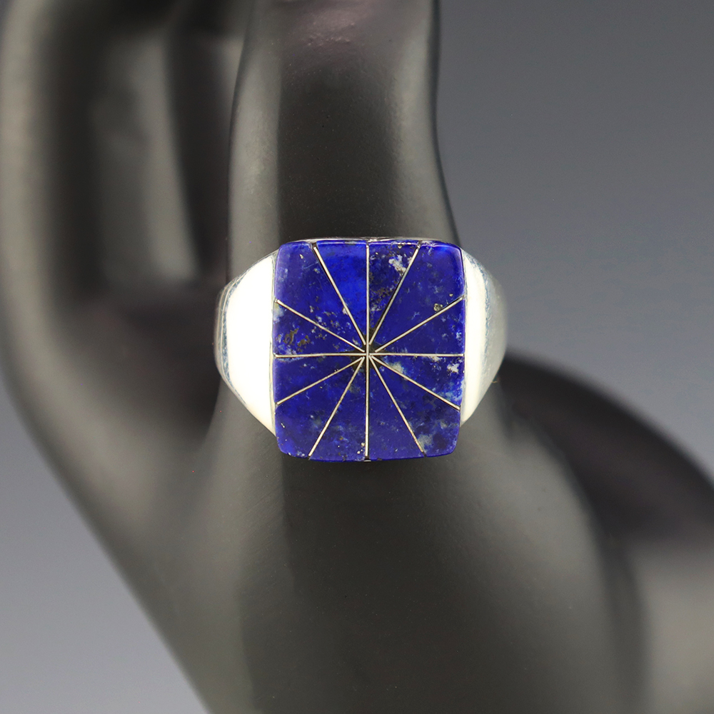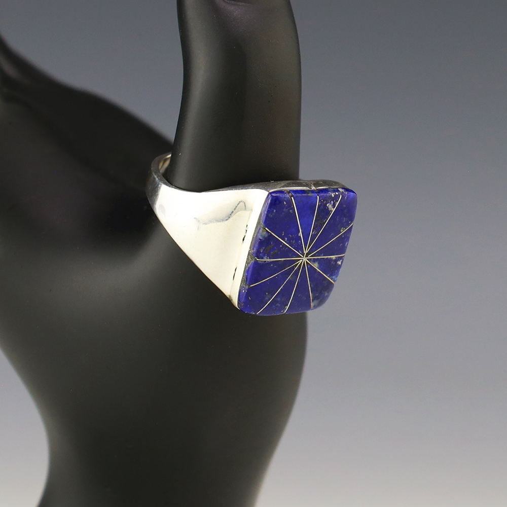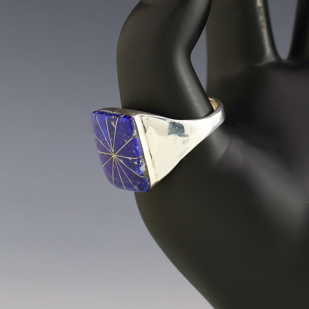 Fine channel inlay work. Zuni jewelry makers, Nancy and Sheldon Westika hand crafted this stunning ring. Sterling silver and inlaid with natural Lapis. Zuni artists are known for their lapidary work. The Westikas have been making jewelry since the 1970’s and they are known for their fine inlay work. Signed. ...