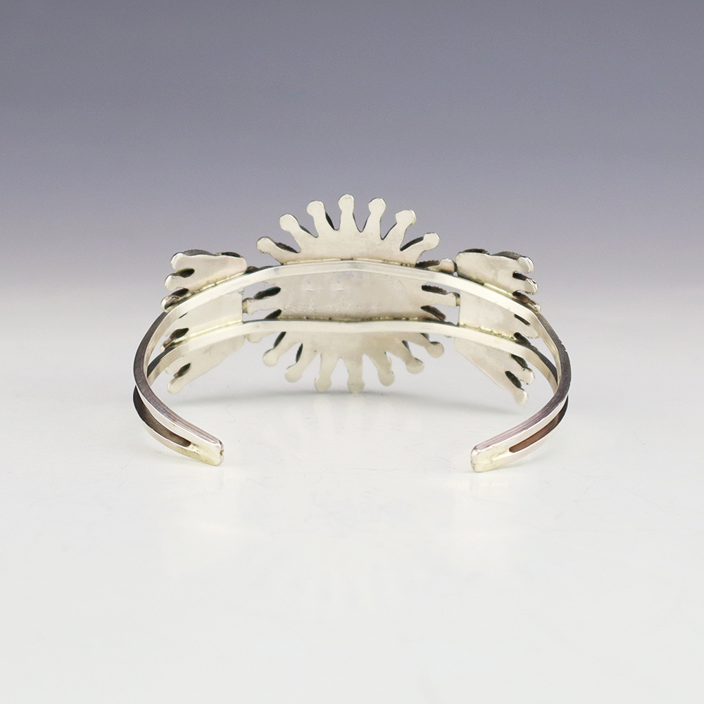 In the mid 1800s, Navajo silversmiths started to use sand casting as one of their silversmithing techniques. Today, silversmiths still use this technique by carving a design in tufa stone (a porous limestone) and then placing another stone against it. The two pieces are fastened together and molten silver is...