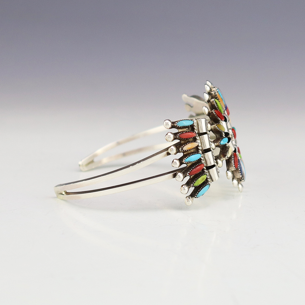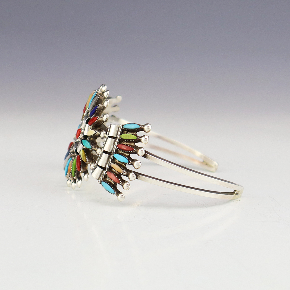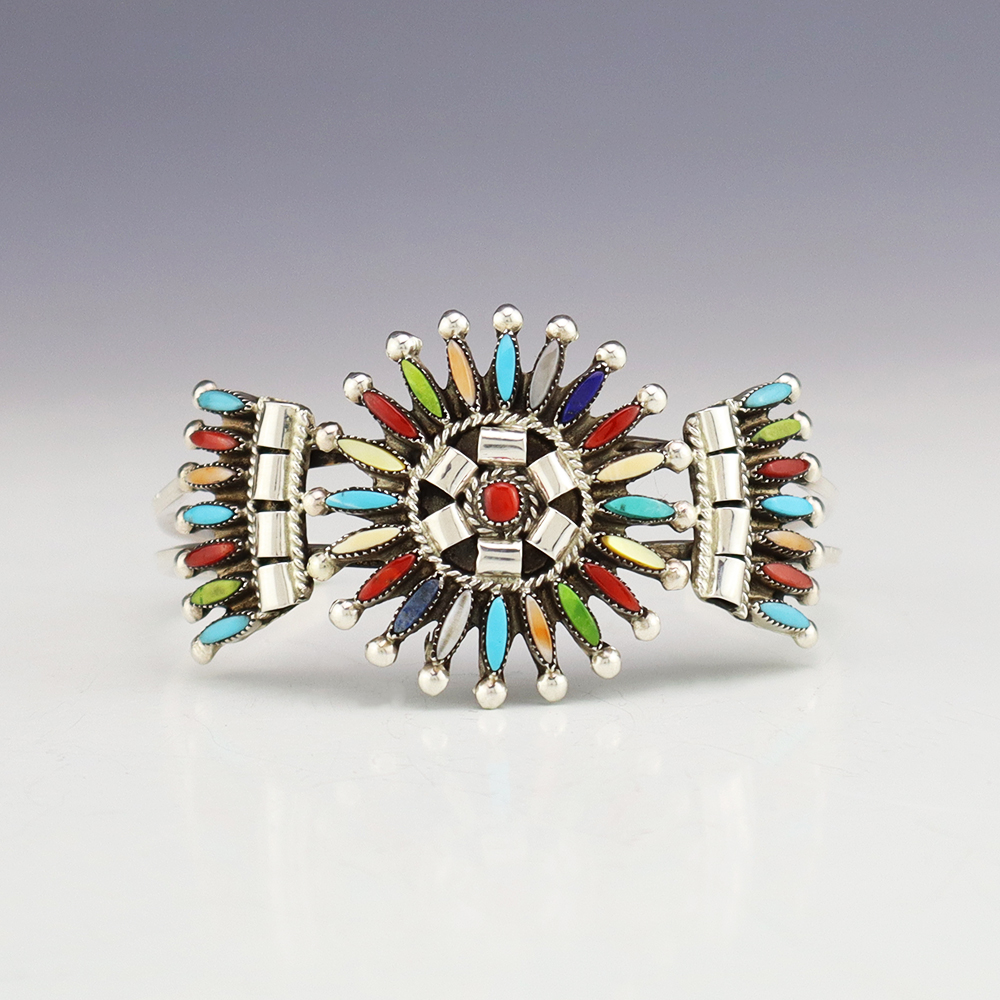 Zuni Pueblo is the largest pueblo in New Mexico, and because of its location, Zuni is the most traditional. Continuing to make jewelry, fetishes, and pottery, most of the people of Zuni are artists. Zuni jewelry makers are known for lapidary skills including inlay, needlepoint, and petite point work.