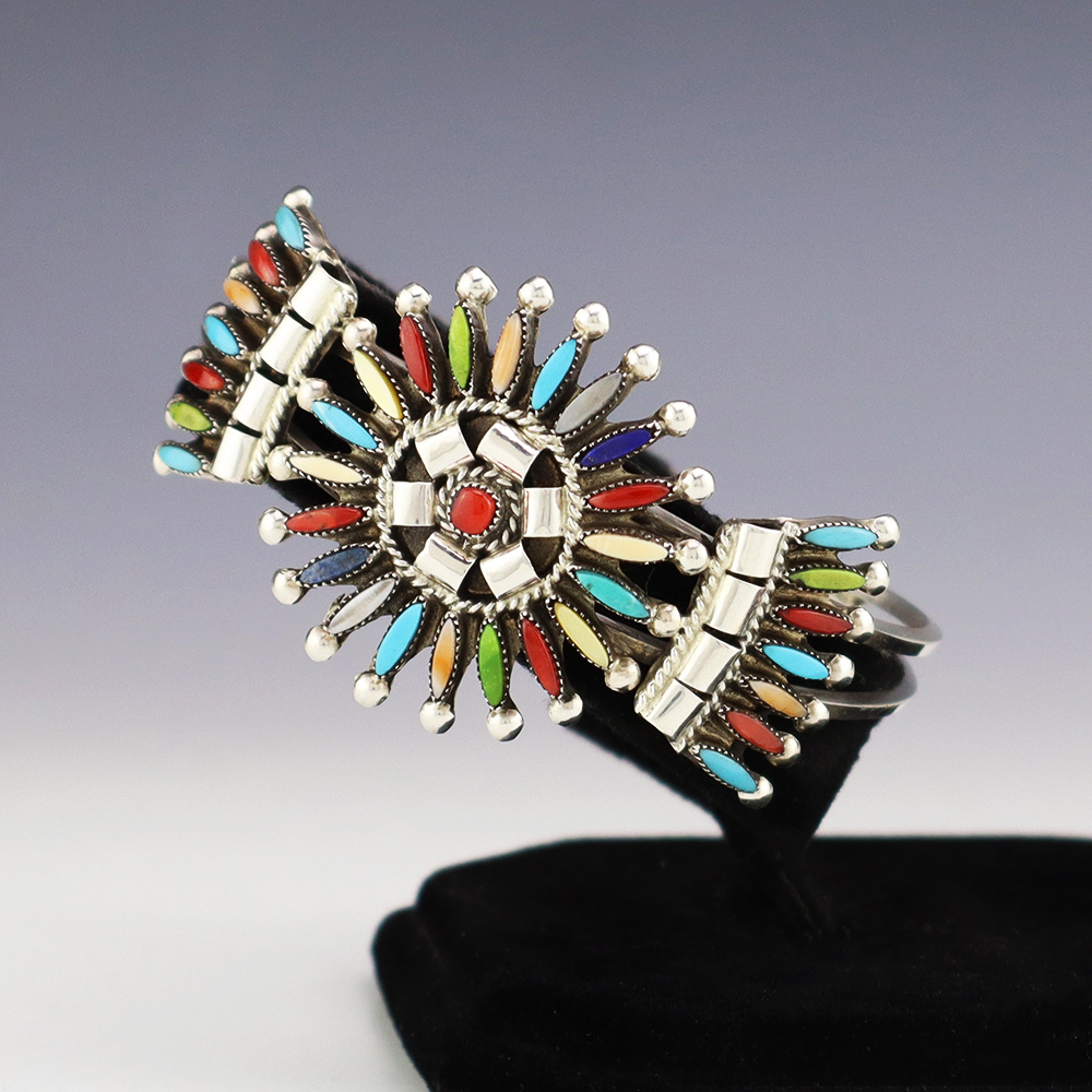 Zuni Pueblo is the largest pueblo in New Mexico, and because of its location, Zuni is the most traditional. Continuing to make jewelry, fetishes, and pottery, most of the people of Zuni are artists. Zuni jewelry makers are known for lapidary skills including inlay, needlepoint, and petite point work.