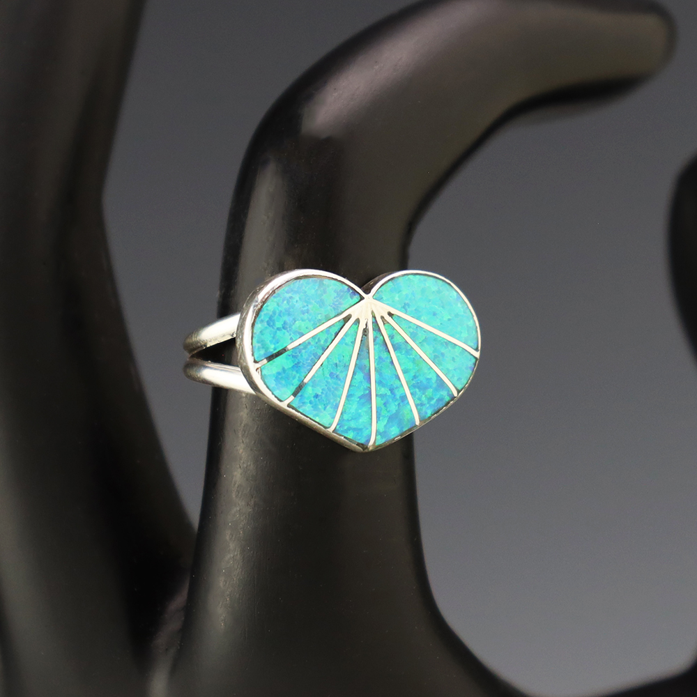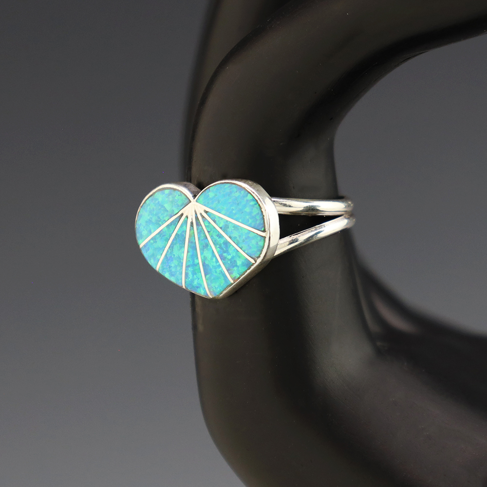 Zuni jewelry makers, Nancy and Sheldon Westika created this magnificent ring. Made out of sterling silver and inlaid with natural Lapis. Zuni artists are known for their lapidary work. The Westikas have been making jewelry since the 1970’s and they are known for their fine inlay work. Signed. Weighs 4...