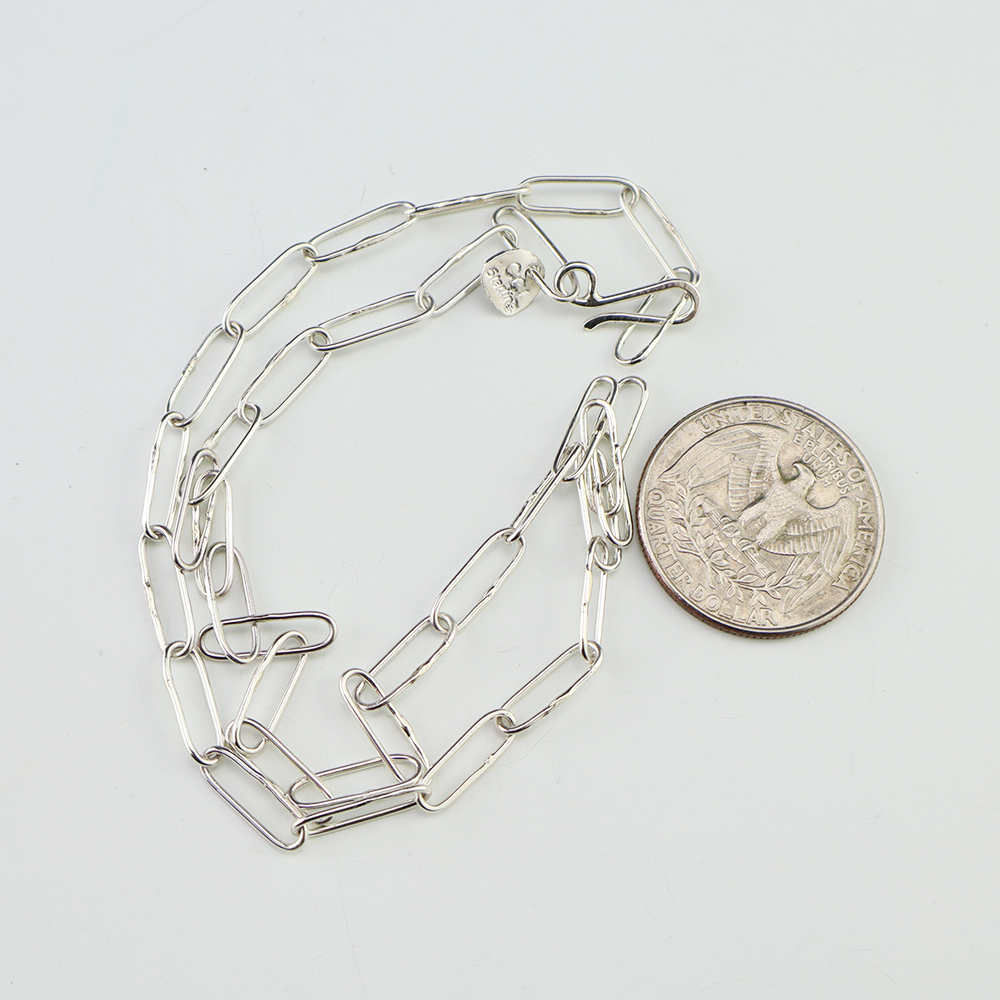 Zuni artist Carlo Lonjose made this fabulous paperclip chain. Sterling silver and 20 gauge round wire. An exquisite statement piece that you will enjoy for many years. The necklace weighs 6 grams. Signed