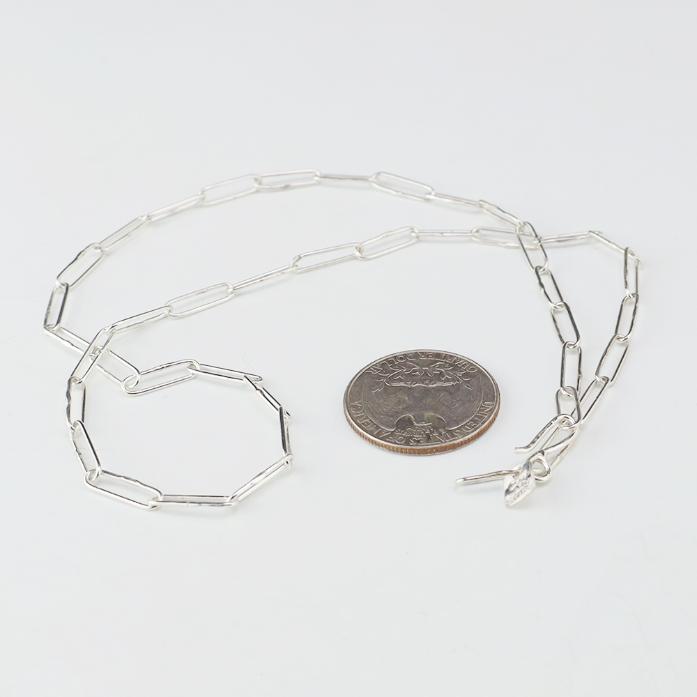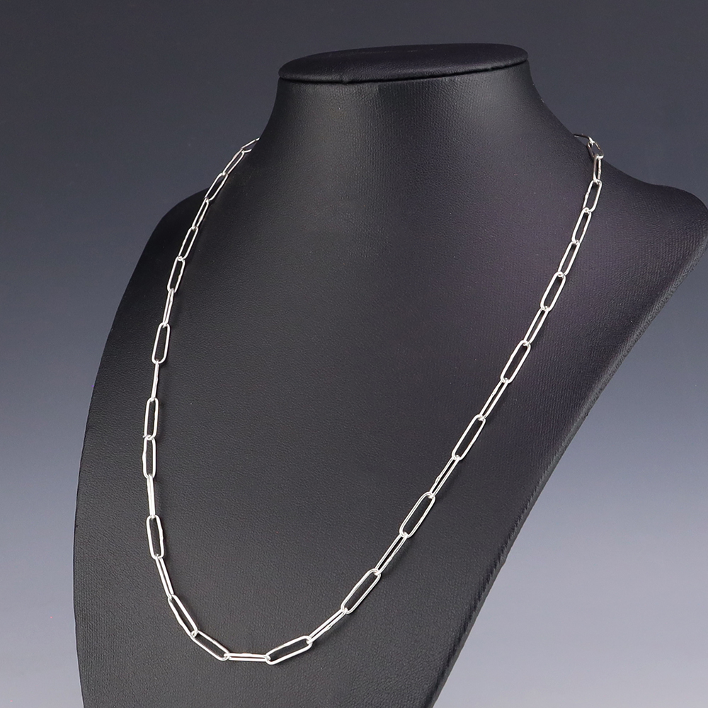 Zuni artist Carlo Lonjose made this fabulous paperclip chain. Sterling silver and 20 gauge round wire. An exquisite statement piece that you will enjoy for many years. The necklace weighs 6 grams. Signed