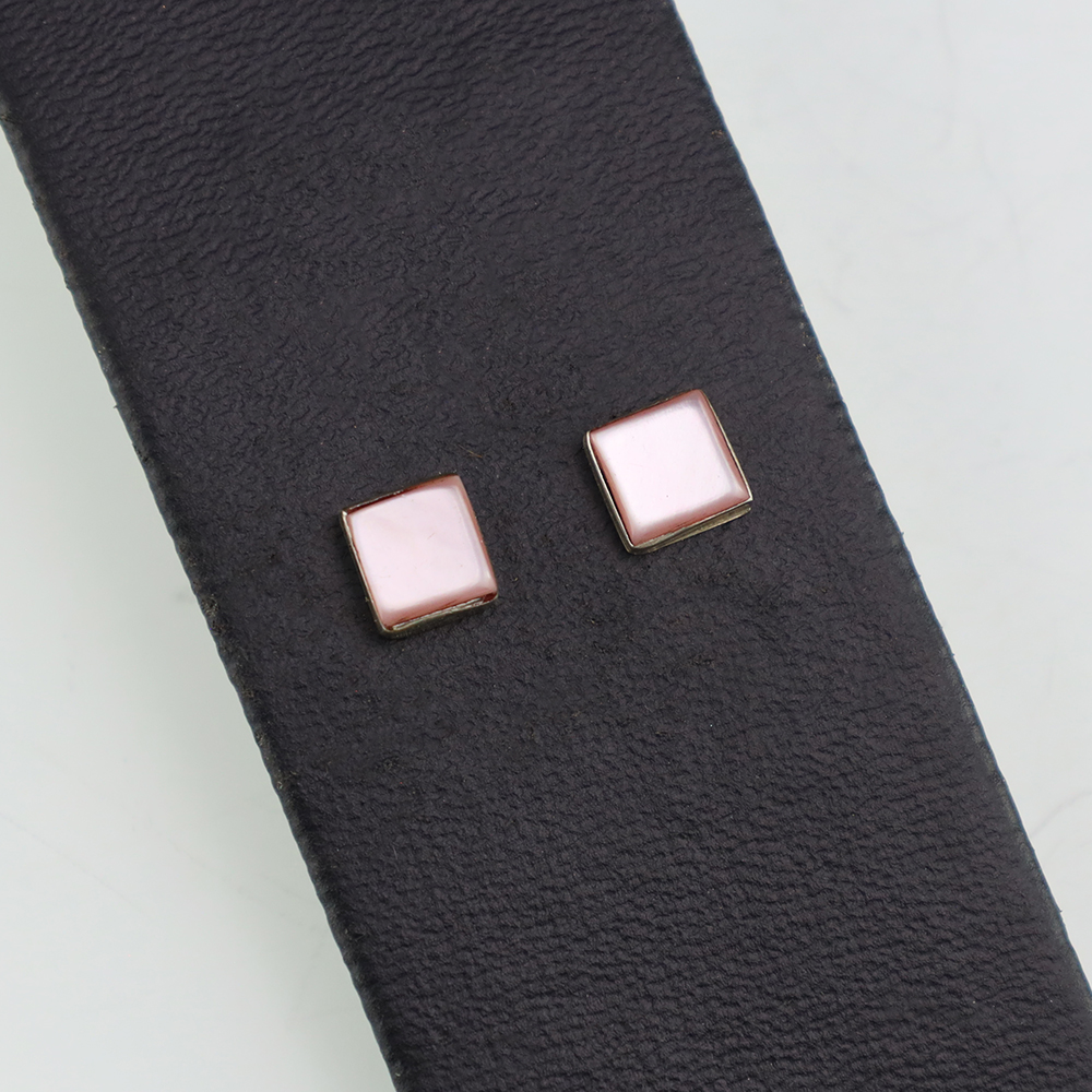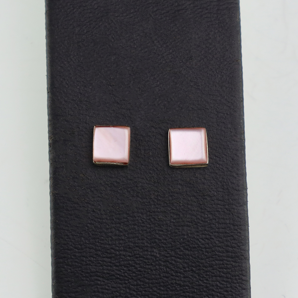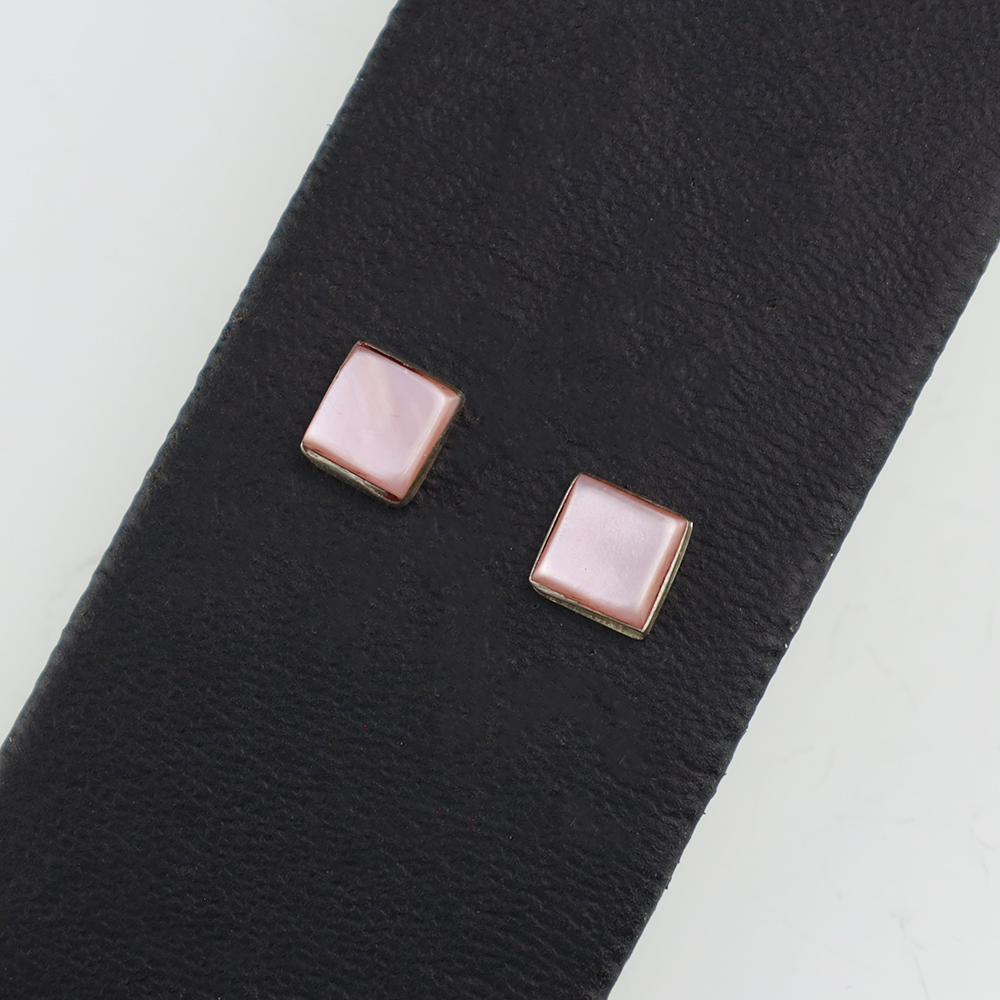 Each earring features Pink Mussel inlaid into a sterling silver setting. Hand made by Zuni artist Trinnie Neha. These gorgeous earrings will become a versatile accessory in your jewelry collection.