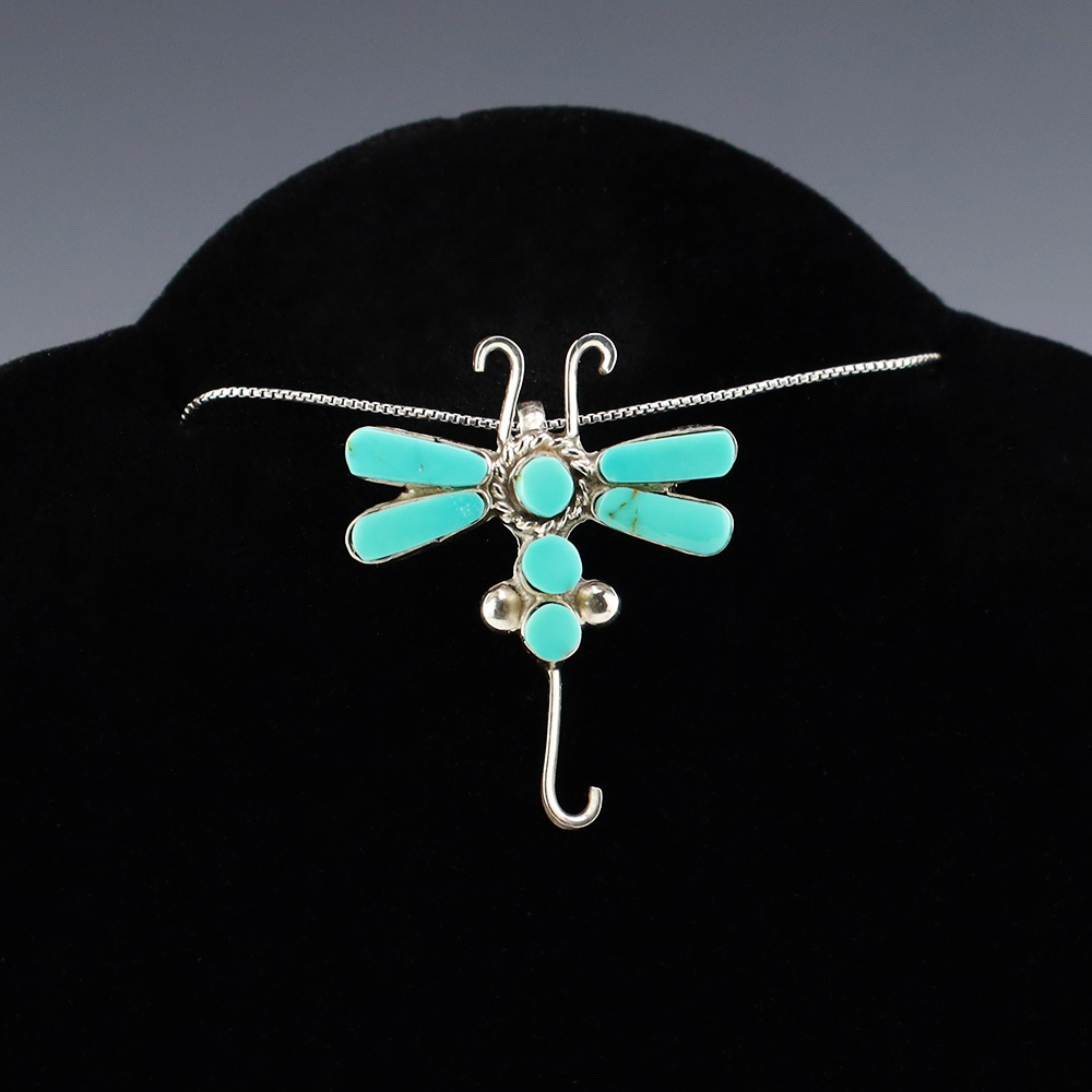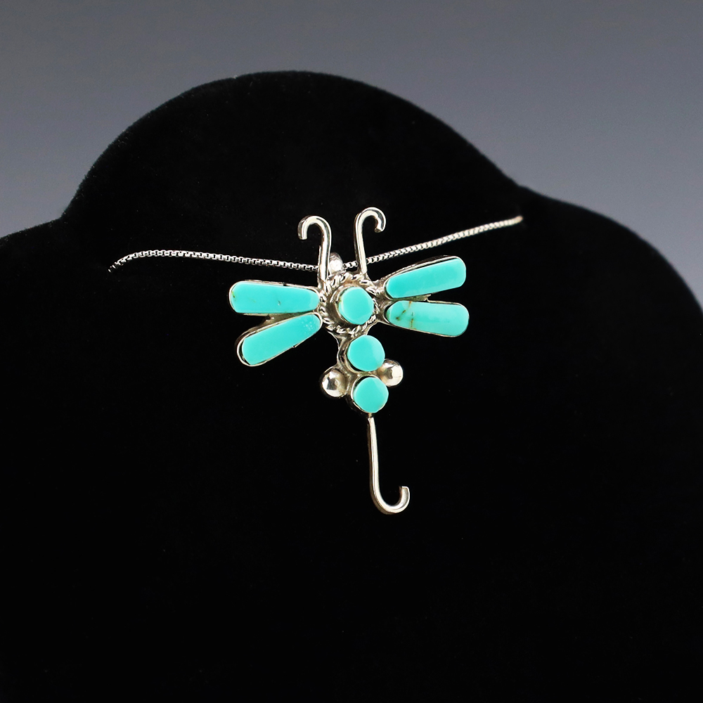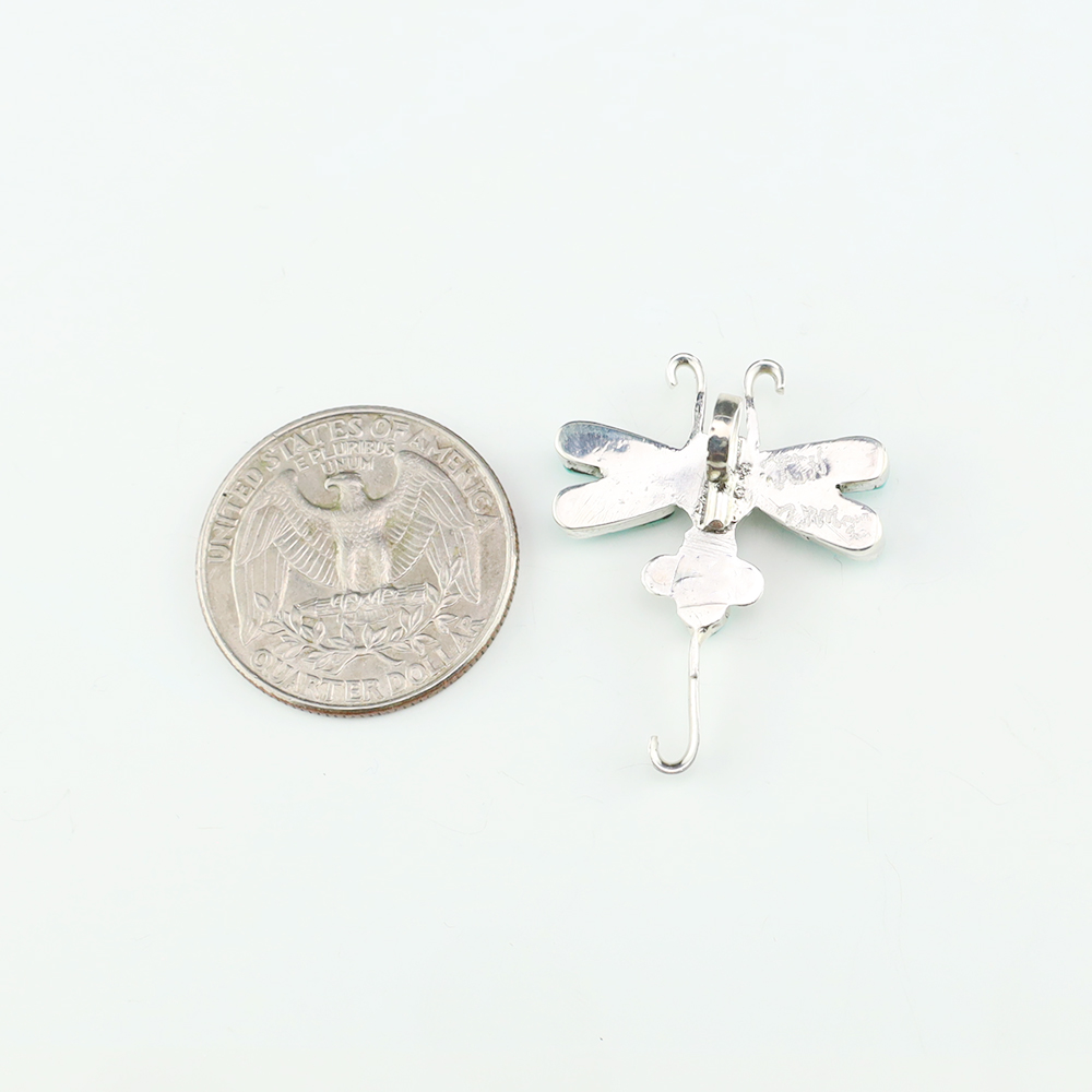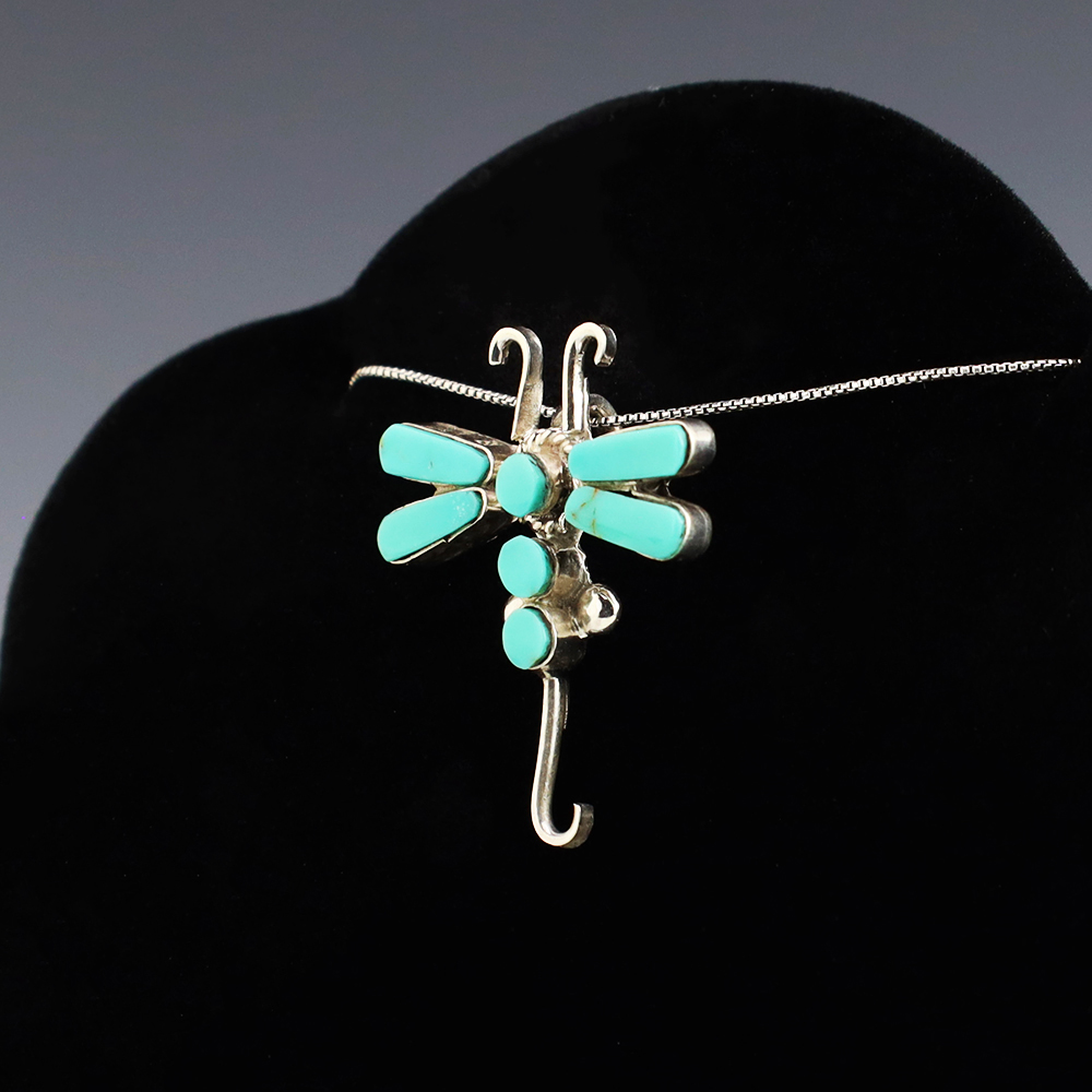 Lovely Dragonfly pendant made out of sterling silver and inlaid with Turquoise. Weighs 4 grams. Signed. (Chain not included)