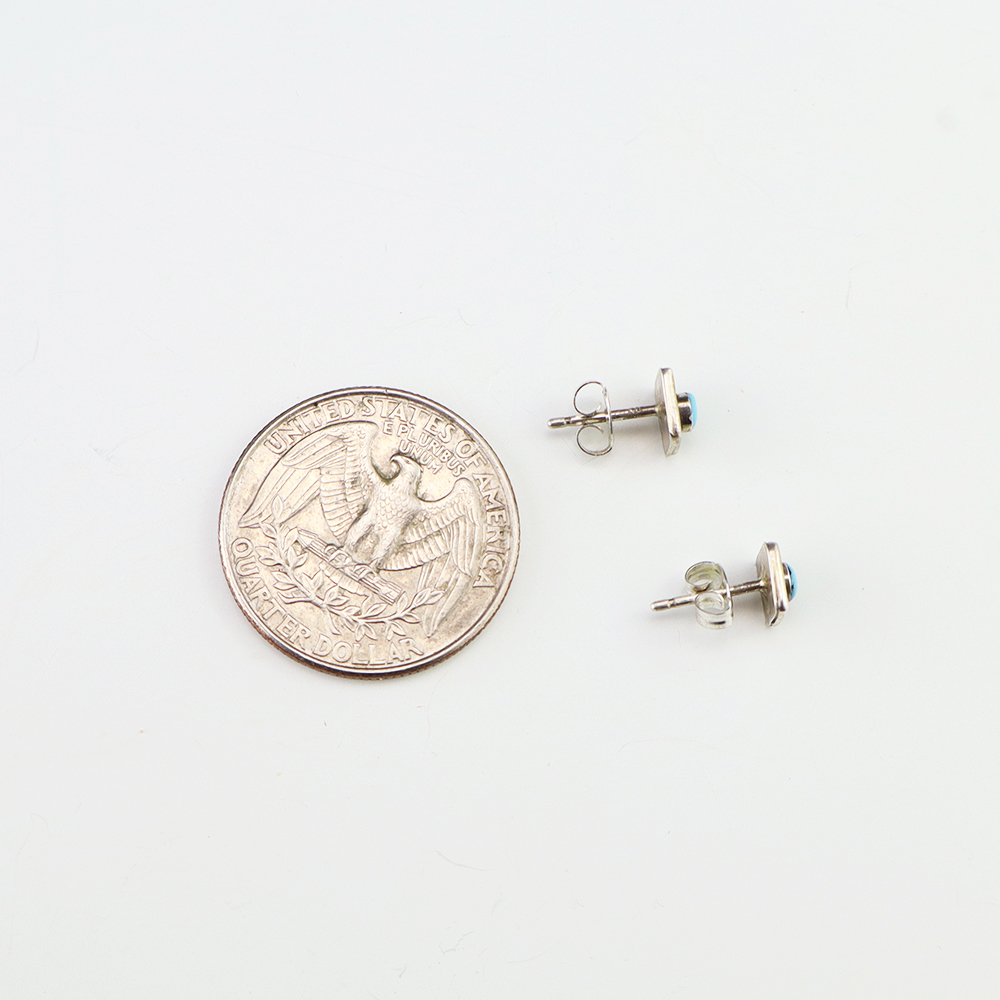 Each earring features Turquoise set into a sterling silver setting. Hand made by Zuni jeweler Anna Neha. These gorgeous earrings will become a versatile accessory in your jewelry collection.