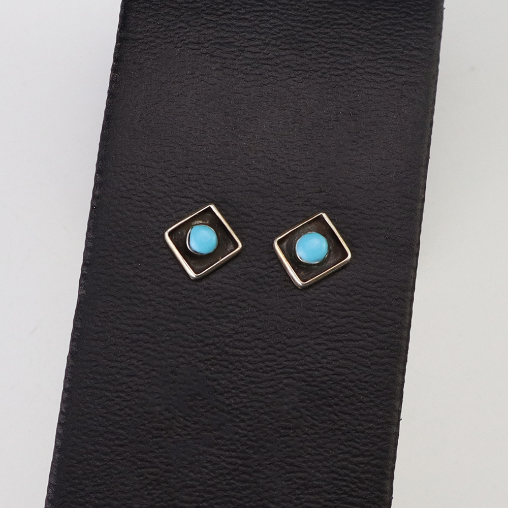 NATIVE AMERICAN ZUNI TURQUOISE EARRINGS BY NANCY & SHELDON WESTIKA