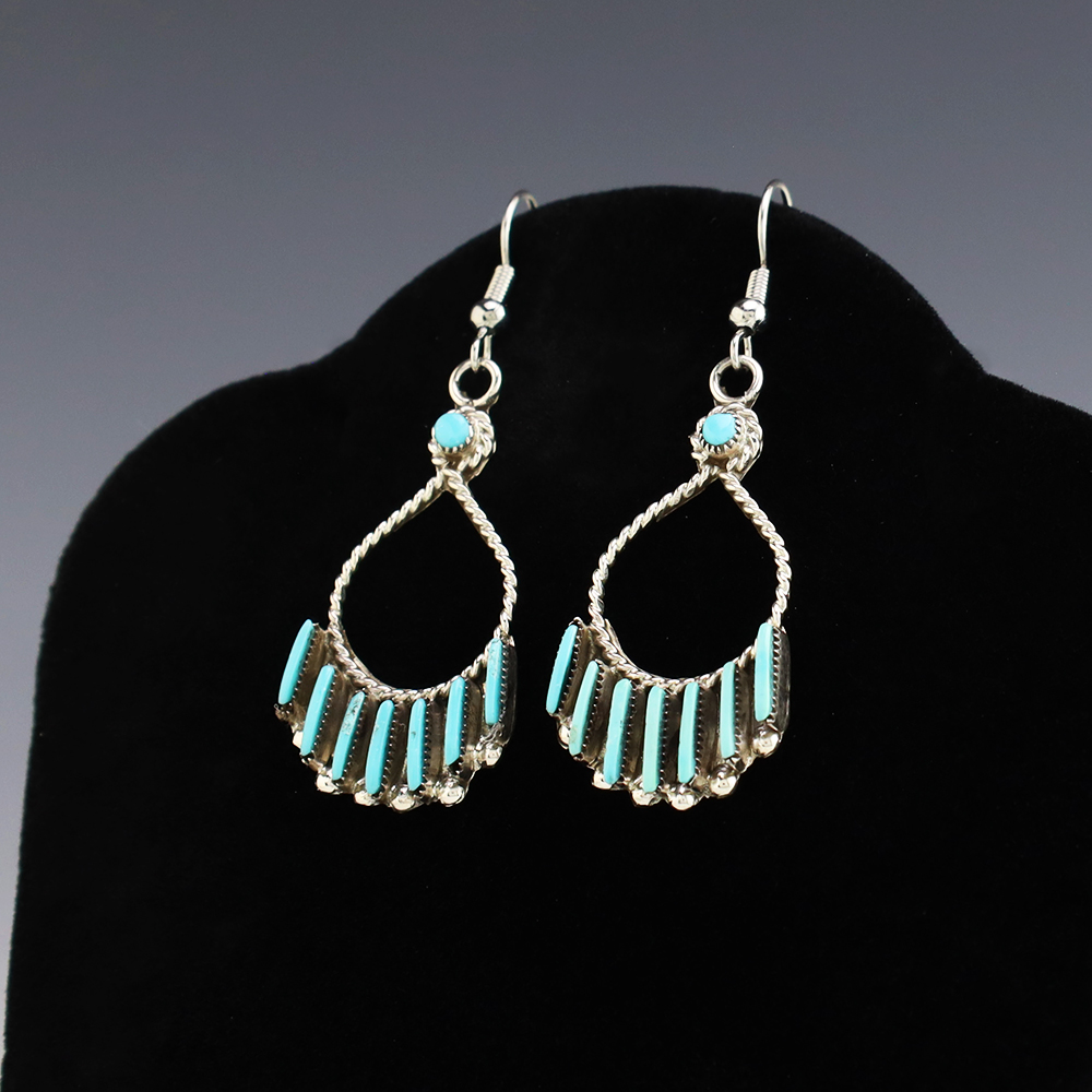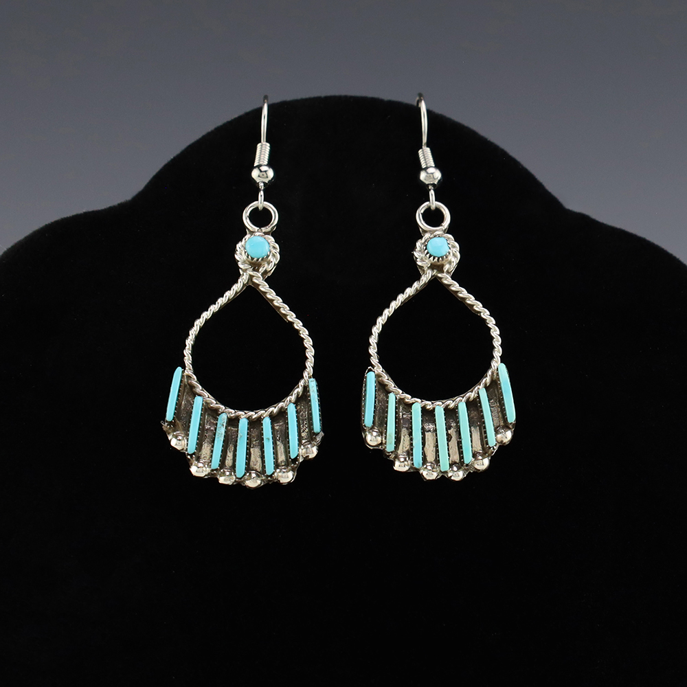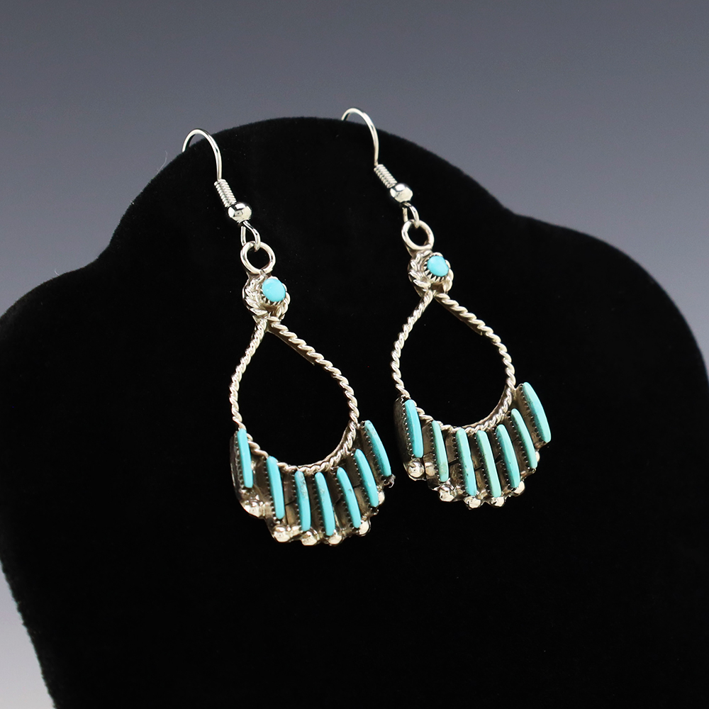 NATIVE AMERICAN ZUNI TURQUOISE EARRINGS BY NANCY & SHELDON WESTIKA