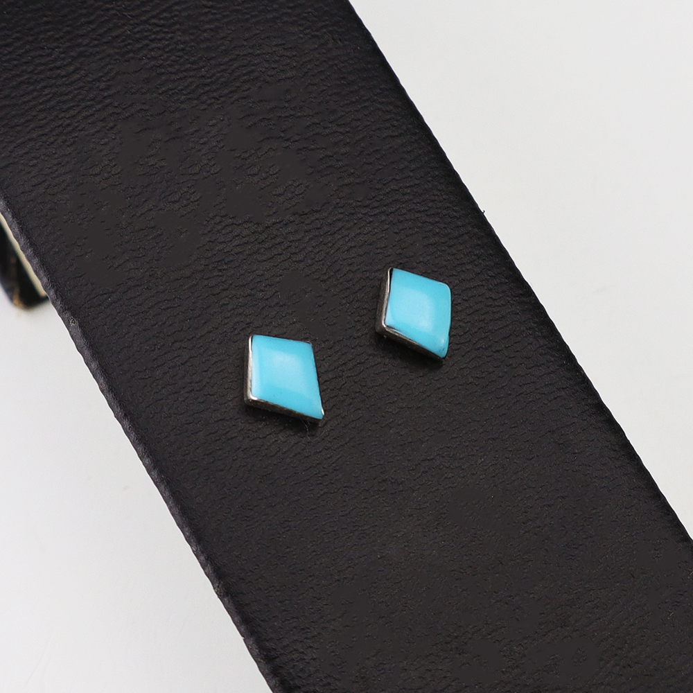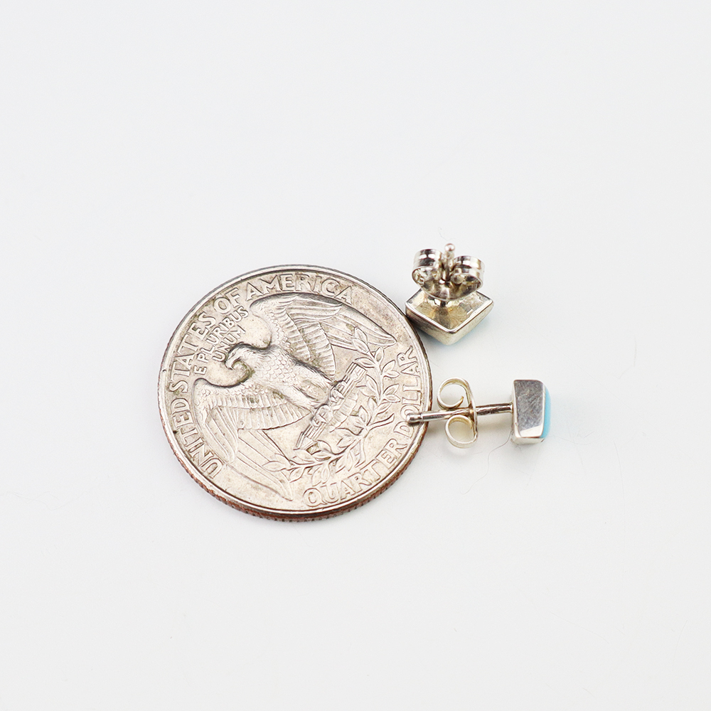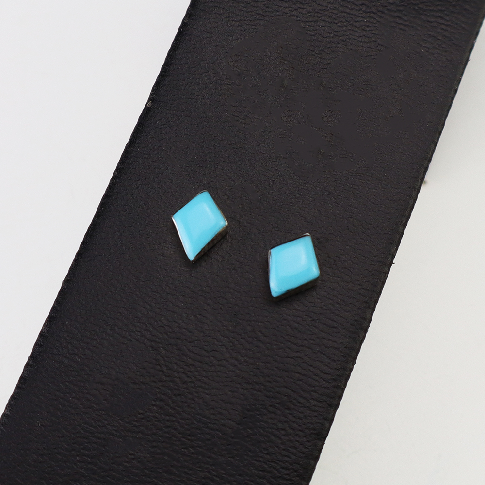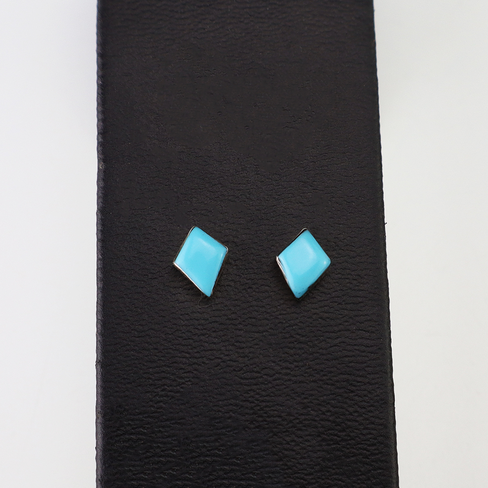 Each earring features Turquoise inlaid into a sterling silver setting. Hand made by Zuni artist Kristi Waatsa. These gorgeous earrings will become a versatile accessory in your jewelry collection.