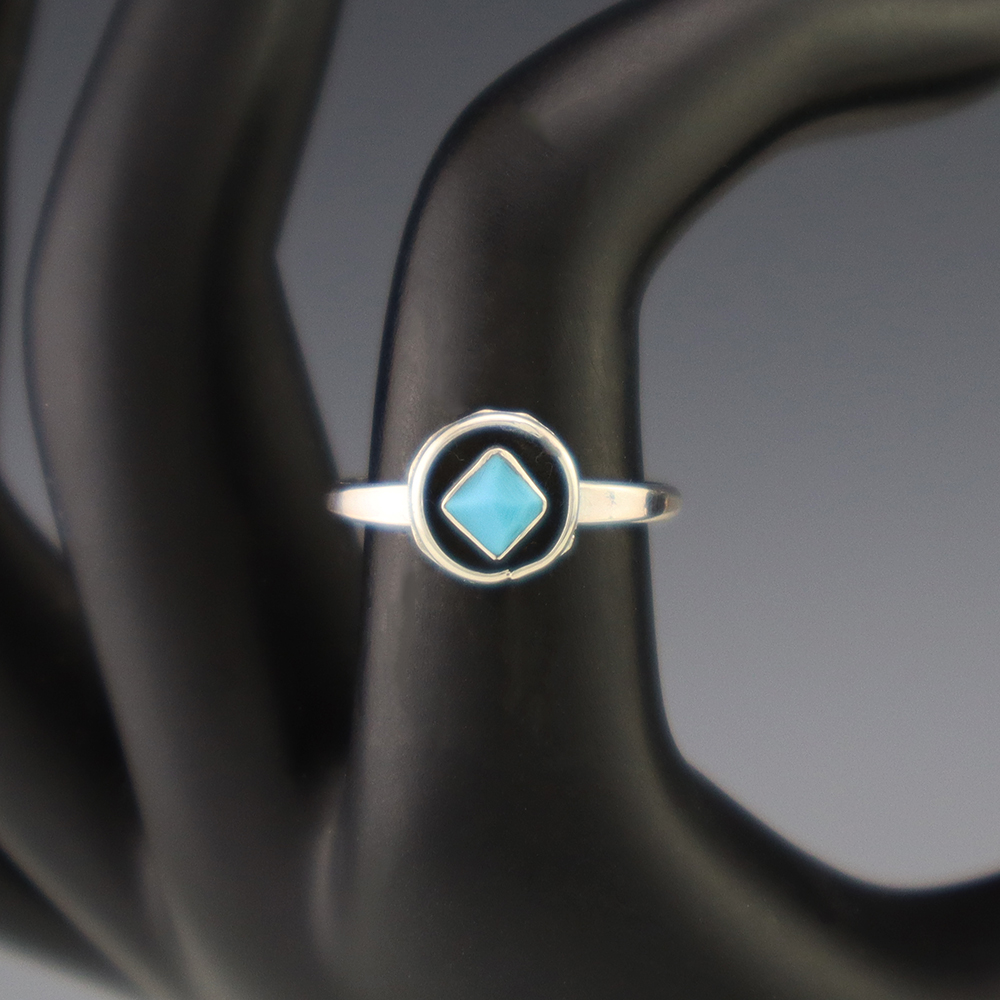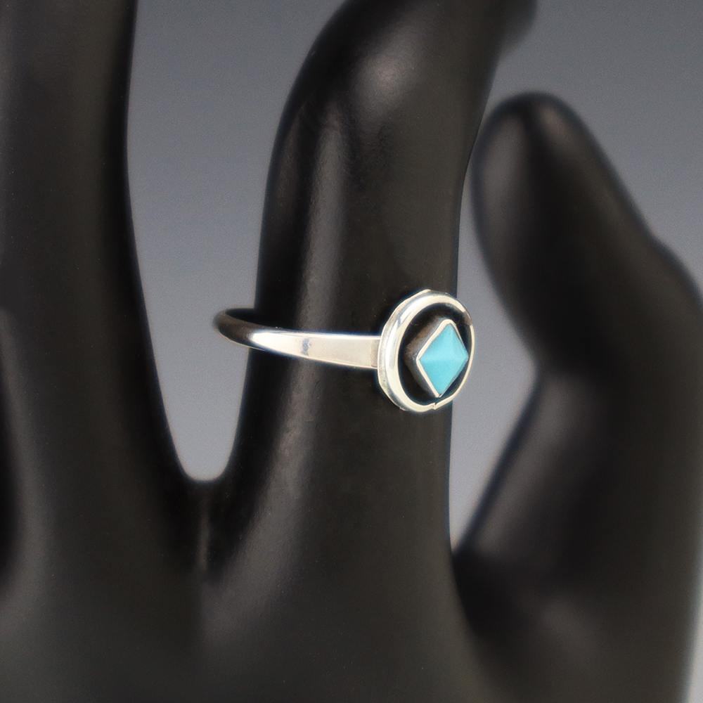 NATIVE AMERICAN TURQUOISE & JET RING BY NANCY & SHELDON WESTIKA 11 1/4