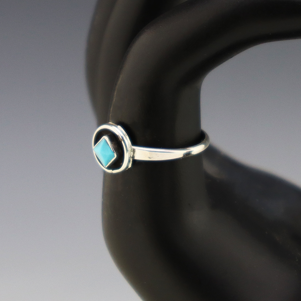Amazing inlay work! Zuni jewelry makers, Nancy and Sheldon Westika made this stunning ring. Made out of sterling silver and inlaid with Kingman Turquoise and Jet. Zuni artists are known for their lapidary work. The Westikas have been making jewelry since the 1970’s and they are known for their fine...