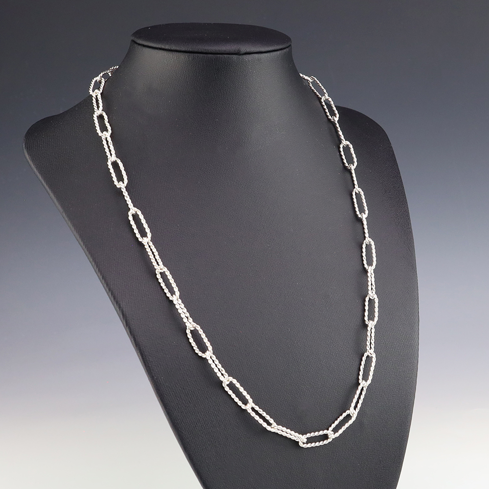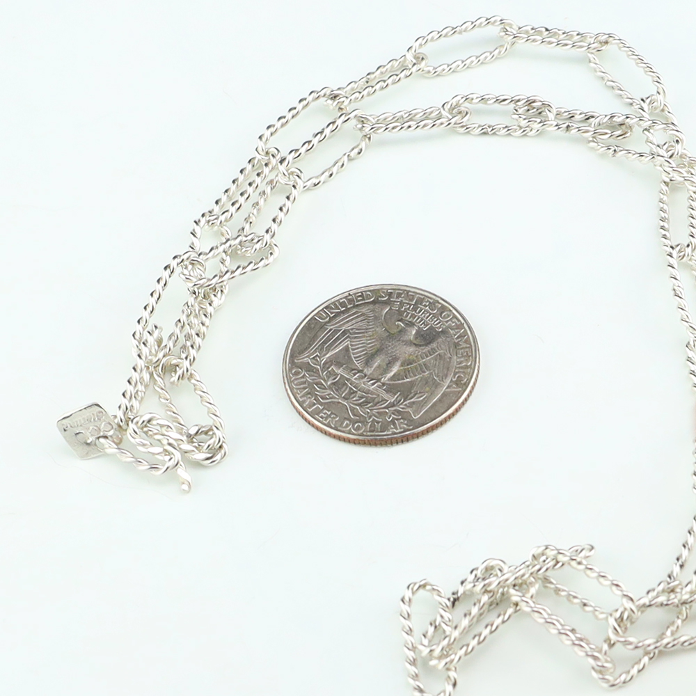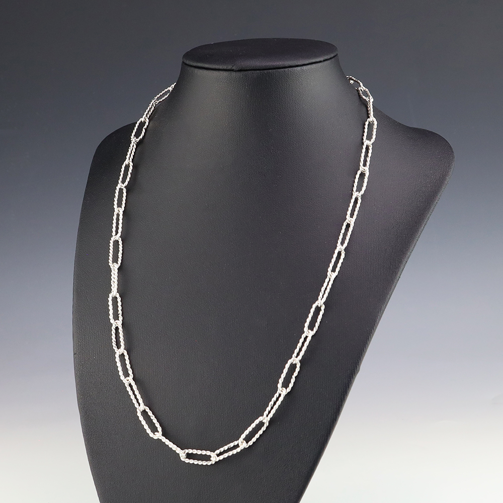 Zuni artist Carlo Lonjose made this stellar twisted paperclip chain. Sterling silver. An exquisite statement piece that you will enjoy for many years. The necklace weighs 18 grams. Signed