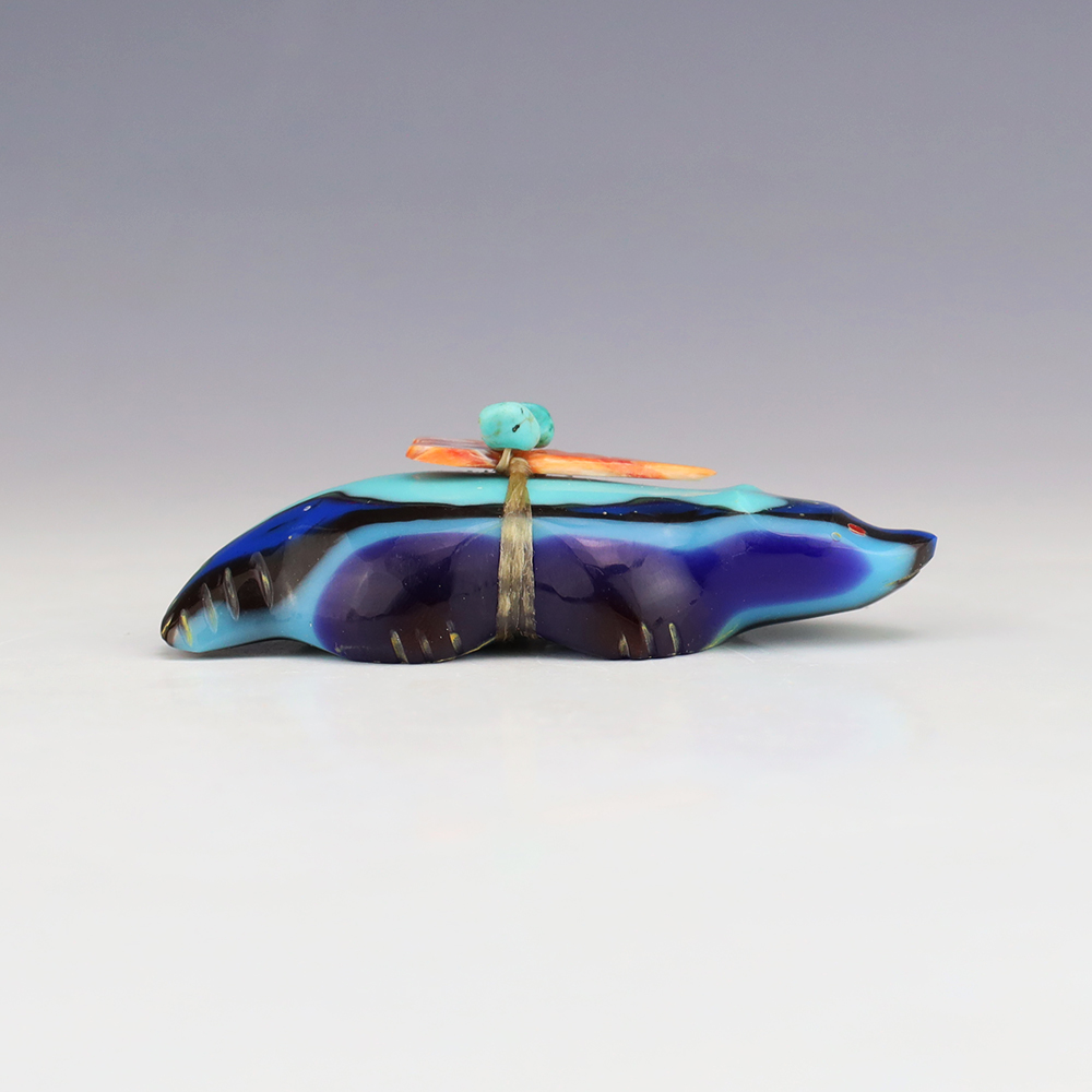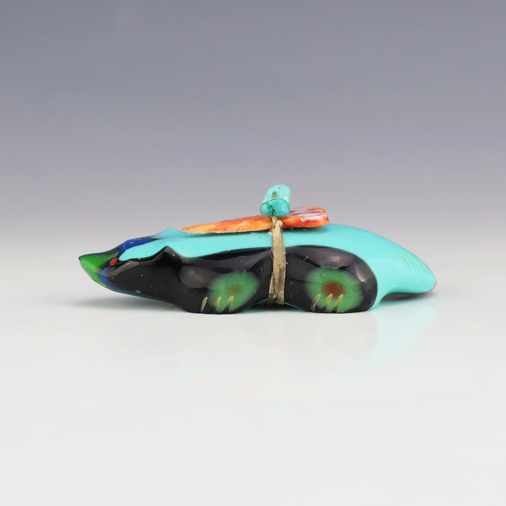 Zuni fetishes are carvings made from various materials by the Zuni people. Traditionally, fetishes served a ceremonial purpose for their creators and they represented animals and figures that were part of their culture. Today, as a form of Native American Art, they are sold to collectors worldwide. With a myriad of materials like turquoise, shell, jet, marble, serpentine, and much more, Zuni fetish carvers are able to create carvings in a style of their own.