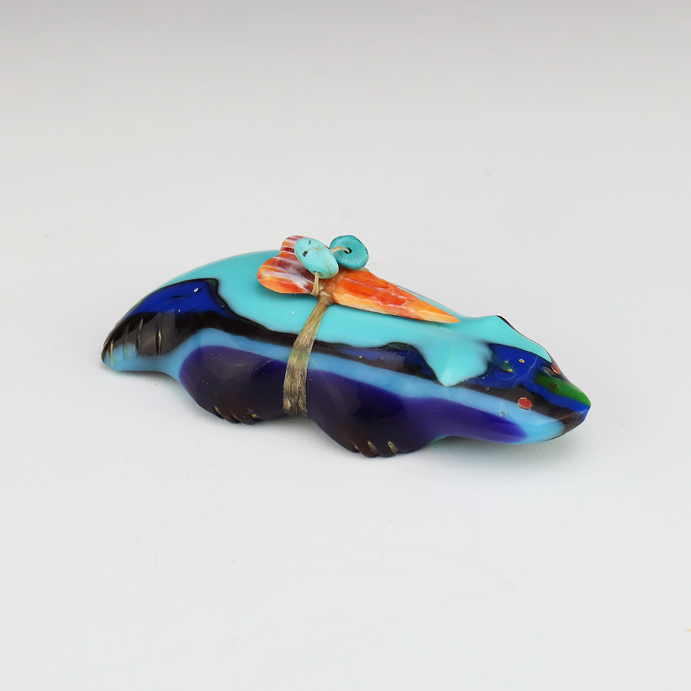 Zuni fetishes are carvings made from various materials by the Zuni people. Traditionally, fetishes served a ceremonial purpose for their creators and they represented animals and figures that were part of their culture. Today, as a form of Native American Art, they are sold to collectors worldwide. With a myriad of materials like turquoise, shell, jet, marble, serpentine, and much more, Zuni fetish carvers are able to create carvings in a style of their own.