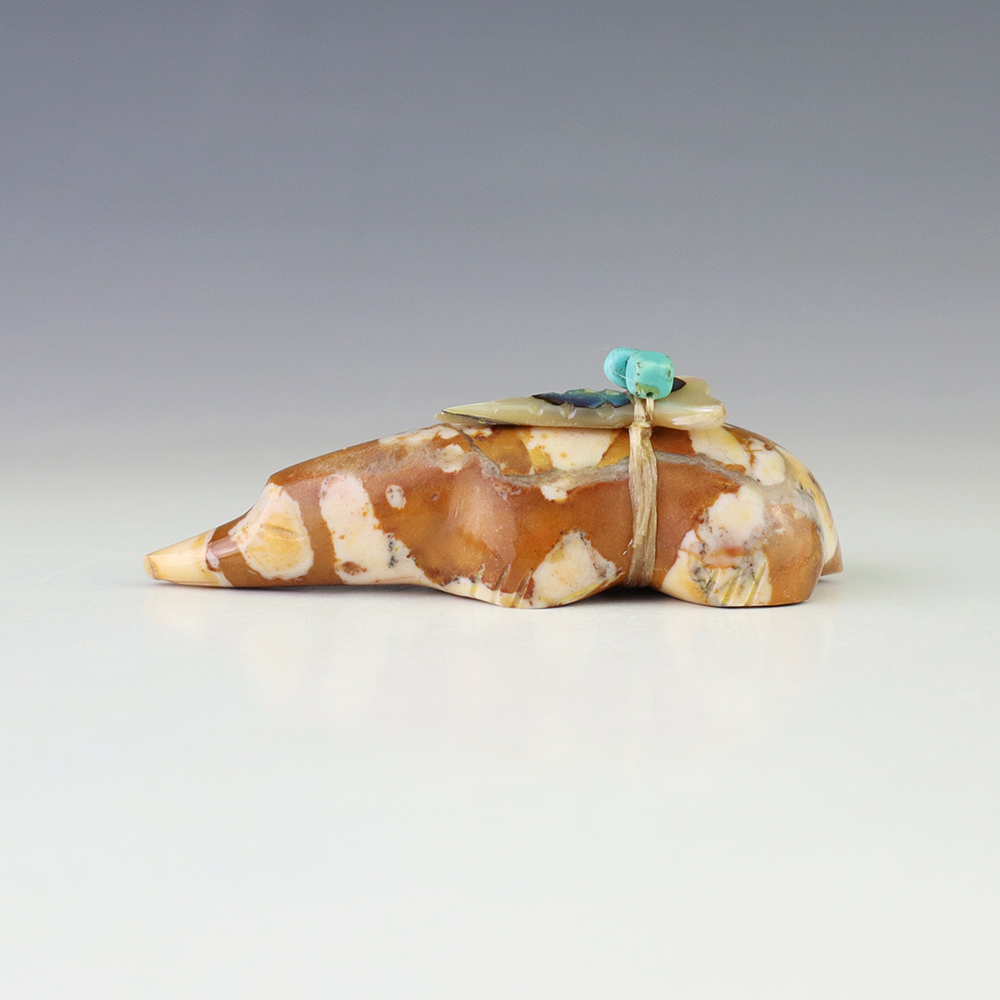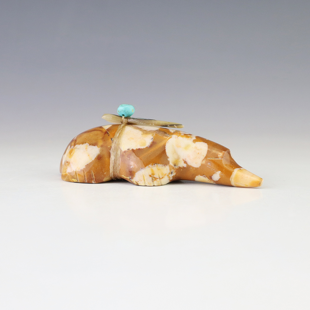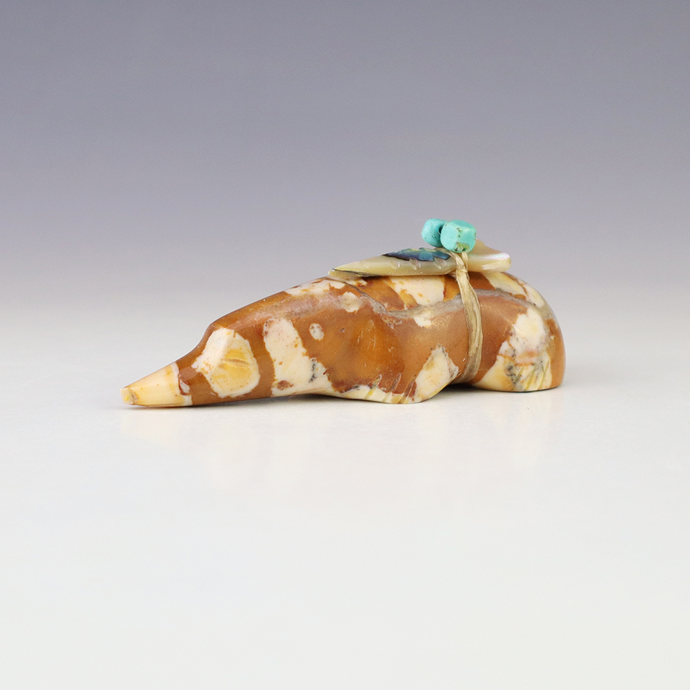 Zuni fetishes are carvings made from various materials by the Zuni people. Traditionally, fetishes served a ceremonial purpose for their creators and they represented animals and figures that were part of their culture. Today, as a form of Native American Art, they are sold to collectors worldwide. With a myriad of materials like turquoise, shell, jet, marble, serpentine, and much more, Zuni fetish carvers are able to create carvings in a style of their own.