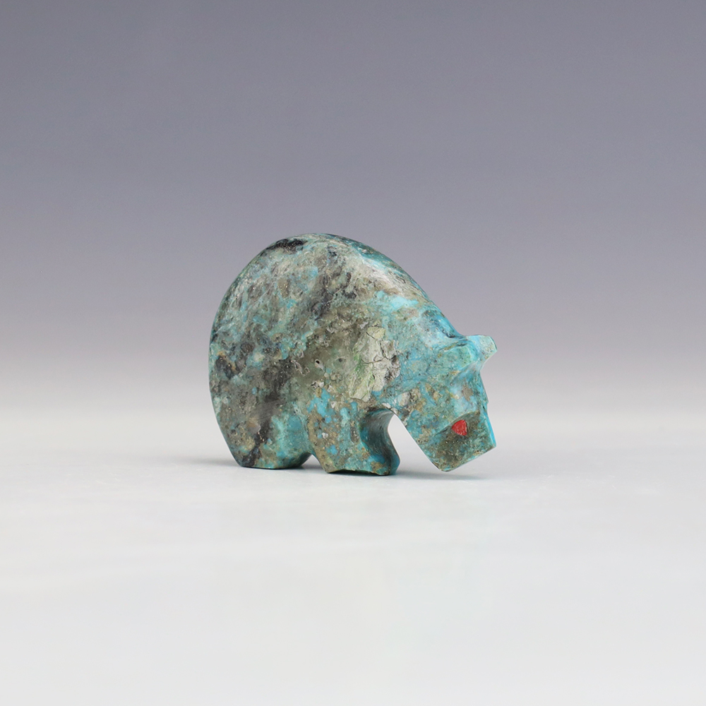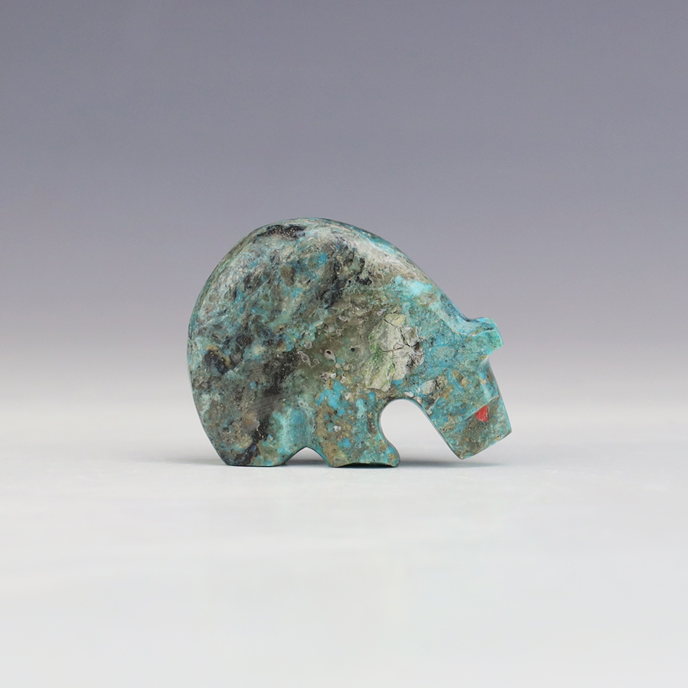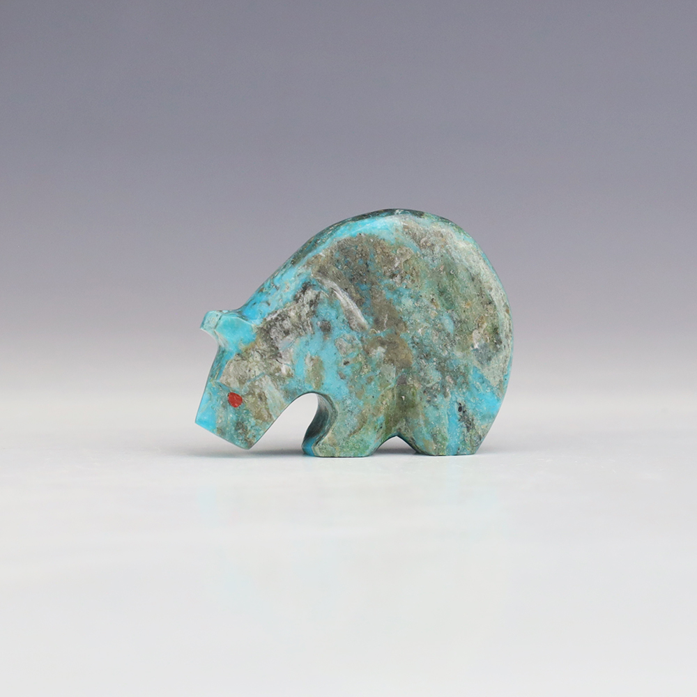 Zuni fetishes are carvings made from various materials by the Zuni people. Traditionally, fetishes served a ceremonial purpose for their creators and they represented animals and figures that were part of their culture. Today, as a form of Native American Art, they are sold to collectors worldwide. With a myriad of materials like turquoise, shell, jet, marble, serpentine, and much more, Zuni fetish carvers are able to create carvings in a style of their own.