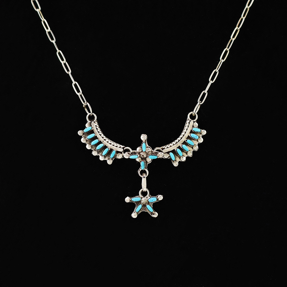 Zuni Pueblo is the largest pueblo in New Mexico, and because of its location, Zuni is the most traditional. Continuing to make jewelry, fetishes, and pottery, most of the people of Zuni are artists. Zuni jewelry makers are known for lapidary skills including inlay, needlepoint, and petit point work.