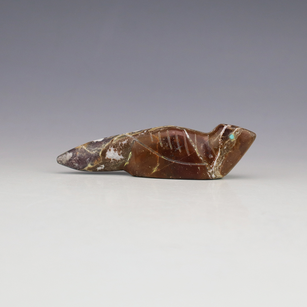 Zuni fetishes are carvings made from various materials by the Zuni people. Traditionally, fetishes served a ceremonial purpose for their creators and they represented animals and figures that were part of their culture. Today, as a form of Native American Art, they are sold to collectors worldwide. With a myriad of materials like turquoise, shell, jet, marble, serpentine, and much more, Zuni fetish carvers are able to create carvings in a style of their own.