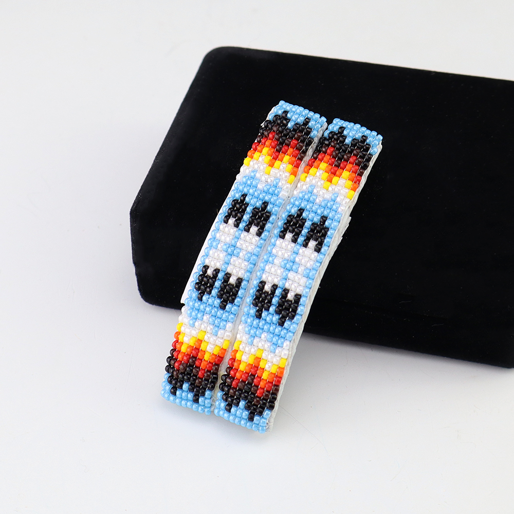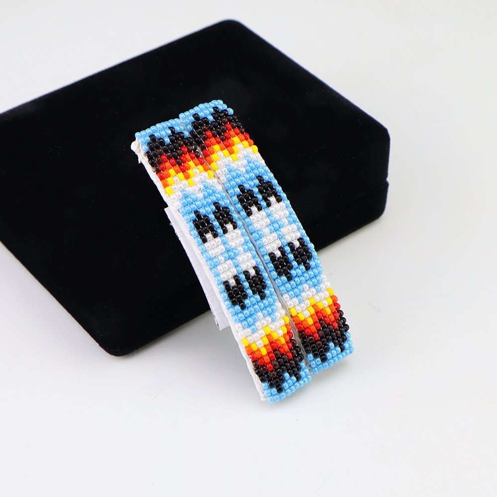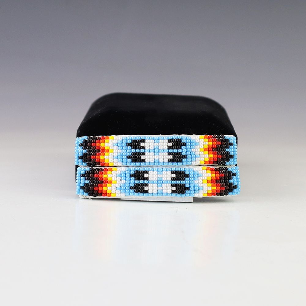 Navajo artist Judy Wilson hand beaded these lovely barrettes. Great colors that compliment the design. Judy uses tiny seed beads to create her jewelry and backs it with soft leather.