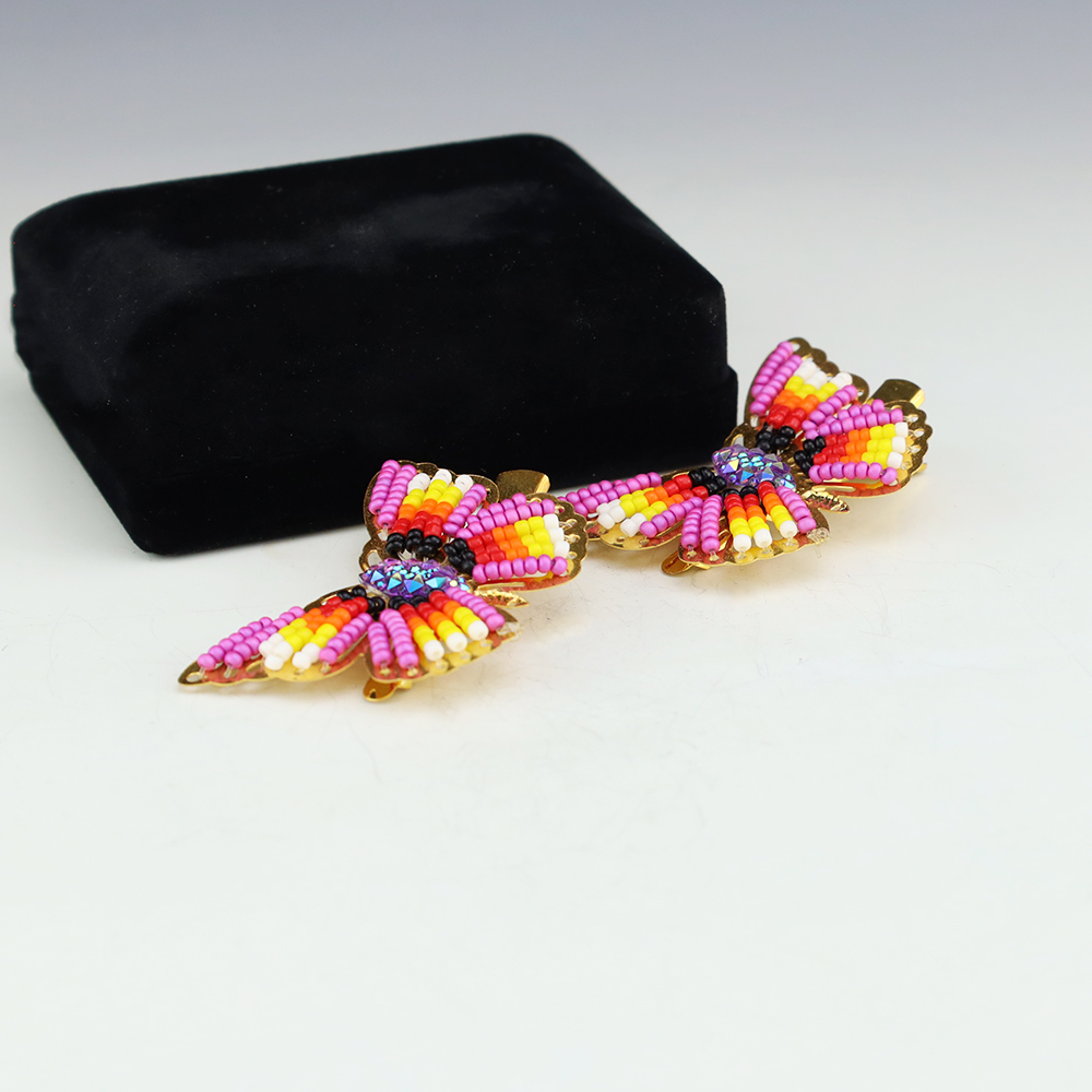 Navajo artist Samantha Jackson uses seed beads to create her jewelry. These beaded barrettes will look fabulous in your hair. Great colors and patterns.