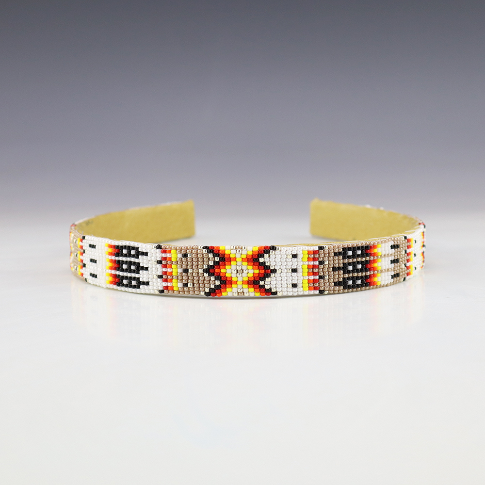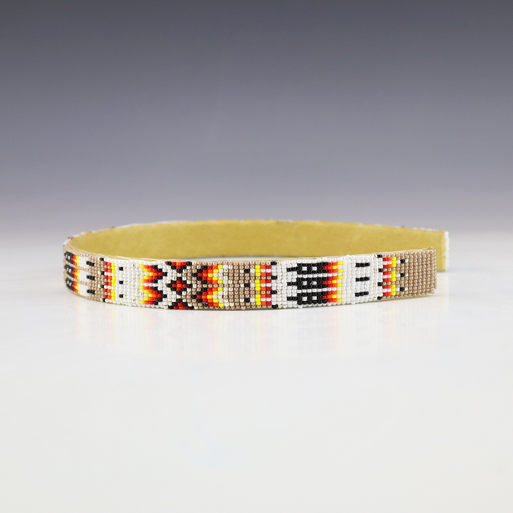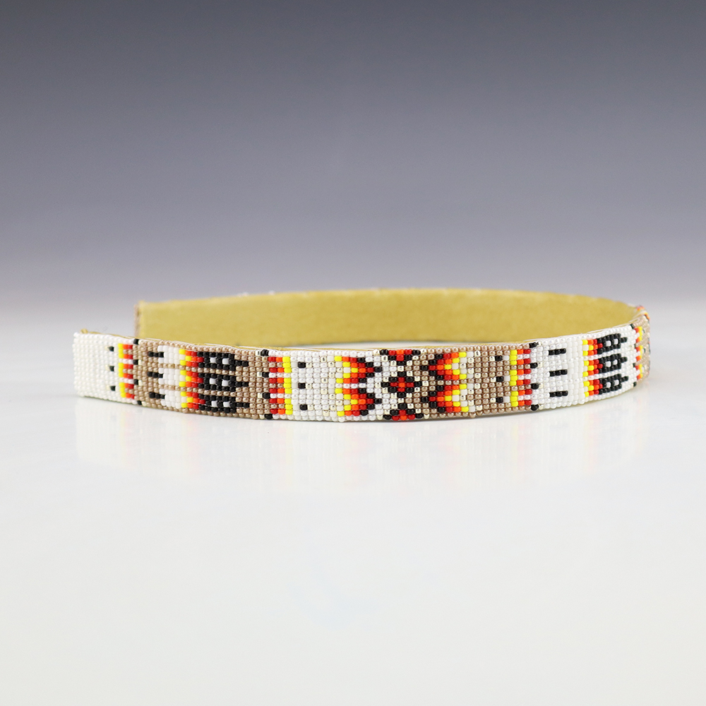 Great colors and patterns in this hand beaded head band. Hand made by Navajo artist Habana Thomas.