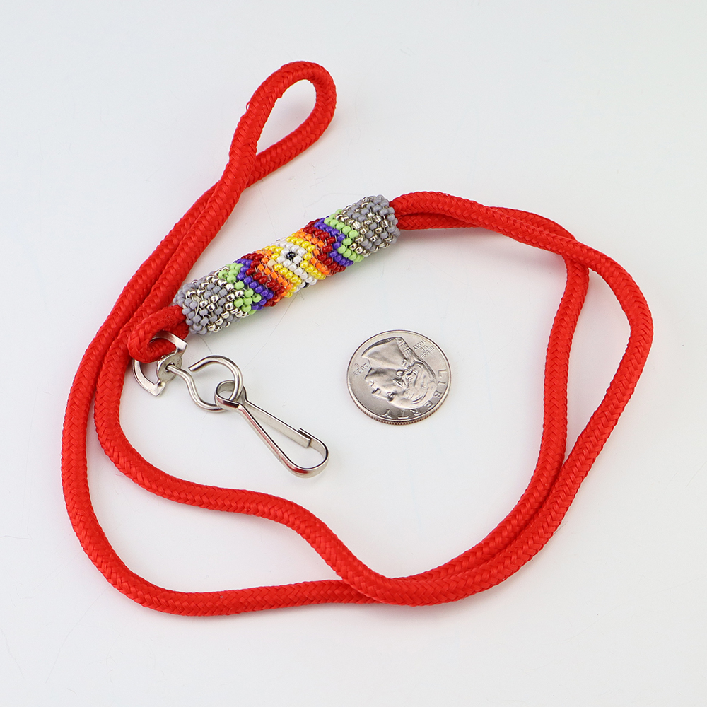 Great way to carry around your keys. Navajo artist Charlene Jackson hand beaded this marvelous key chain lanyard. Great colors that compliment the patterns.