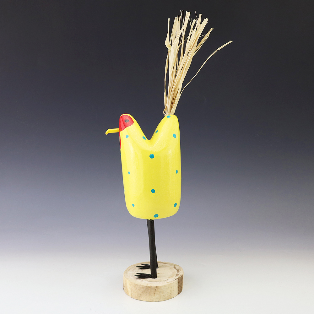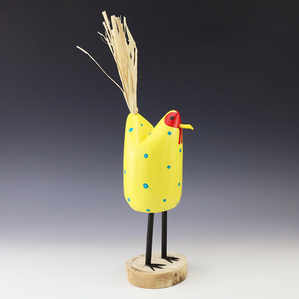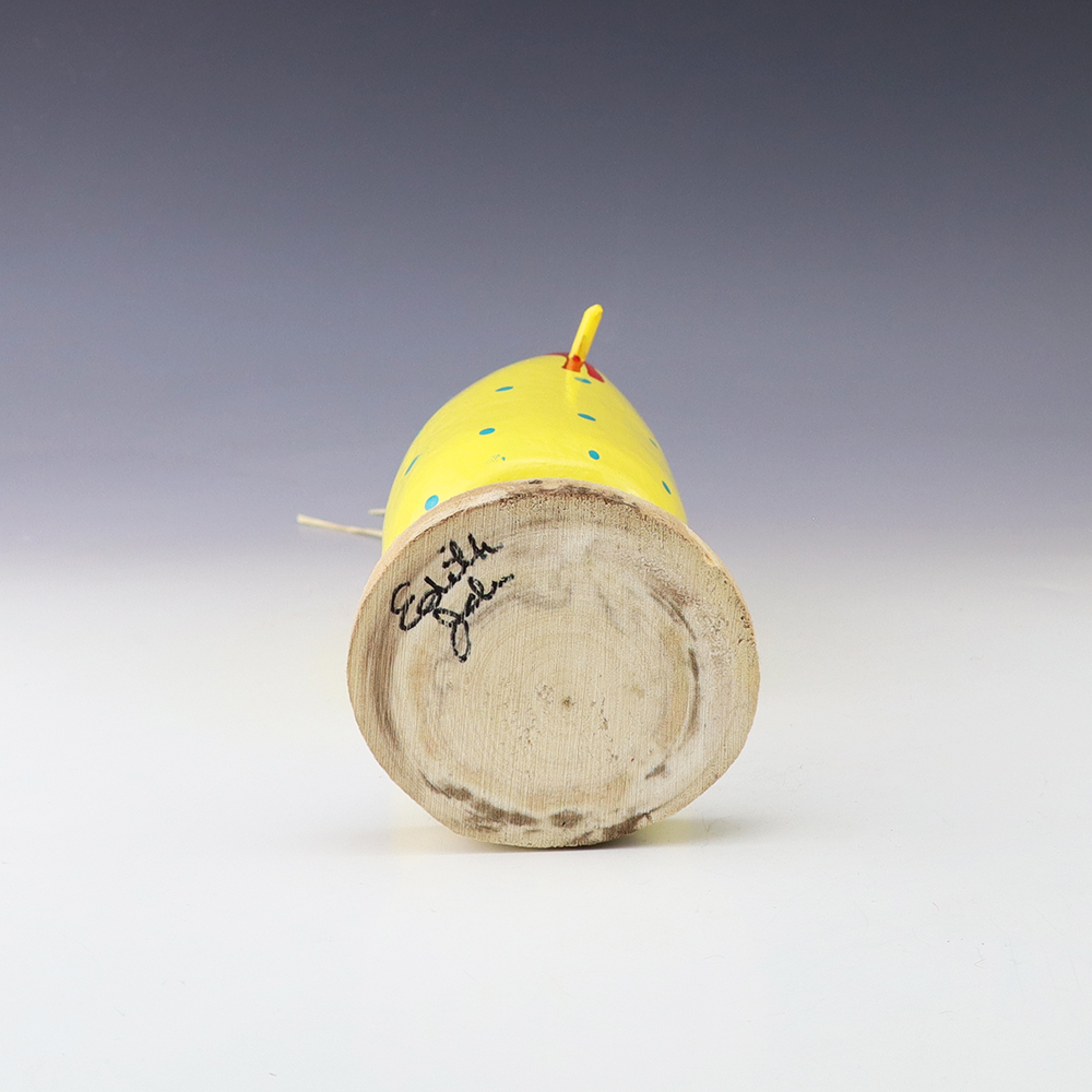 Edith John is the daughter of the late Woody Herbert who was known for his folk art Brahma bulls. Edith started carving while helping her father. Edith’s folk art chickens elicit happiness wherever they roost! Bold colors and patterns, that will brighten your Navajo folk art collection. Hand carved out of wood with a straw tail. Signed