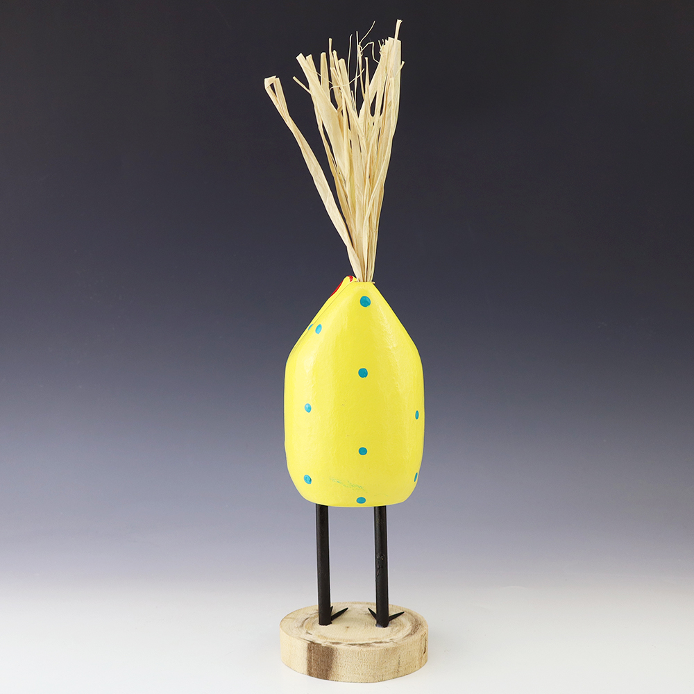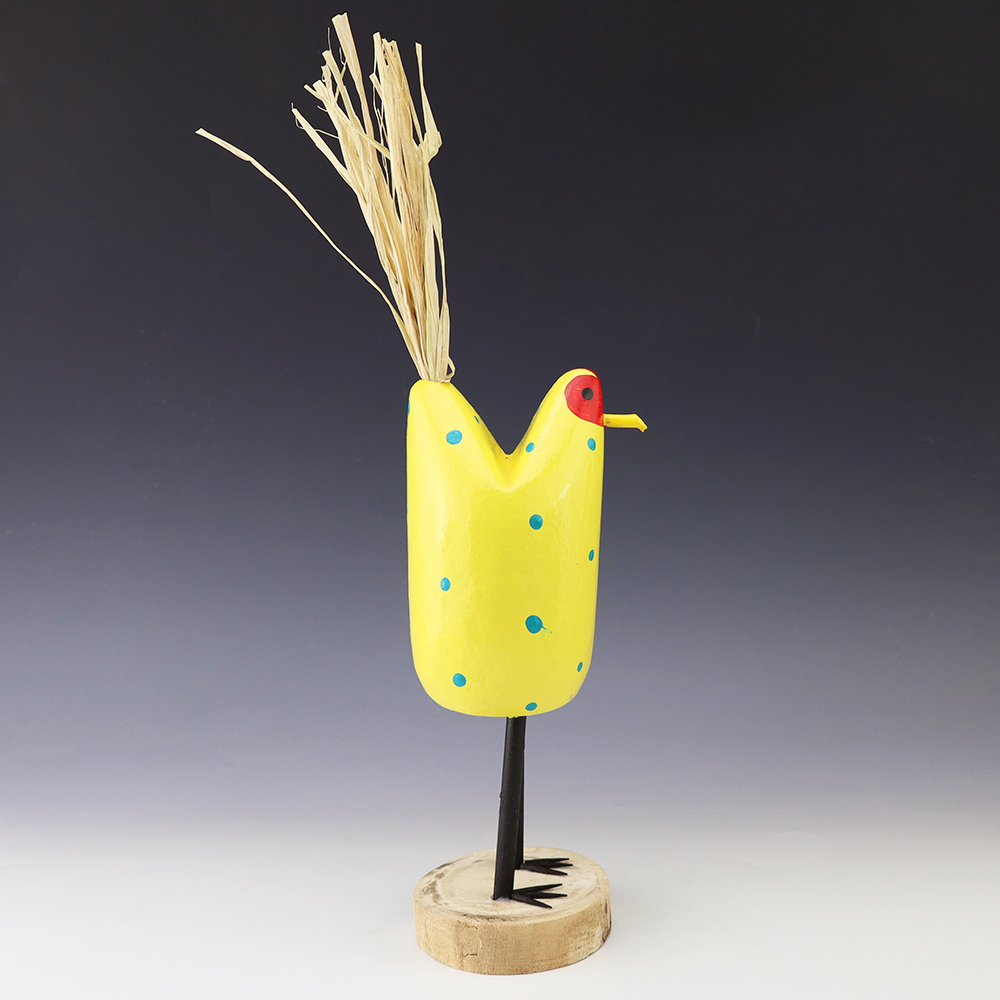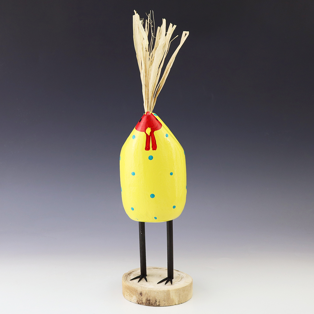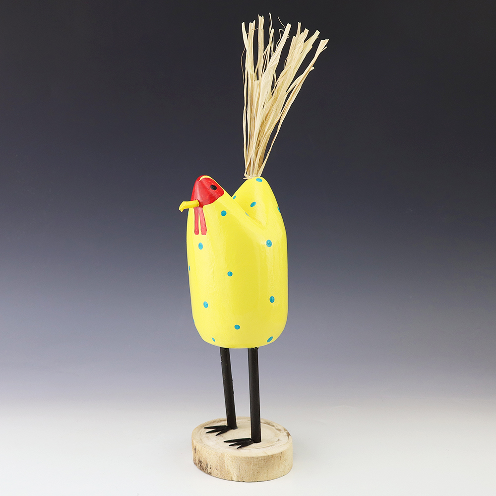 Edith John is the daughter of the late Woody Herbert who was known for his folk art Brahma bulls. Edith started carving while helping her father. Edith’s folk art chickens elicit happiness wherever they roost! Bold colors and patterns, that will brighten your Navajo folk art collection. Hand carved out of wood with a straw tail. Signed