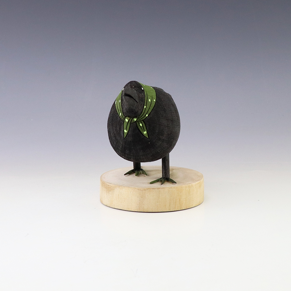 This stylish lady is hand crafted by Navajo folk art artists, Ray and Orleen Lansing. Carved out of cottonwood with an amazing amount of detail. This crow carving would make a wonderful addition to your Native American or Navajo Folk art collection. Signed 10 5/8” tall x 4 3/8” long...