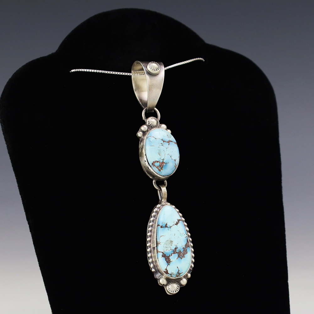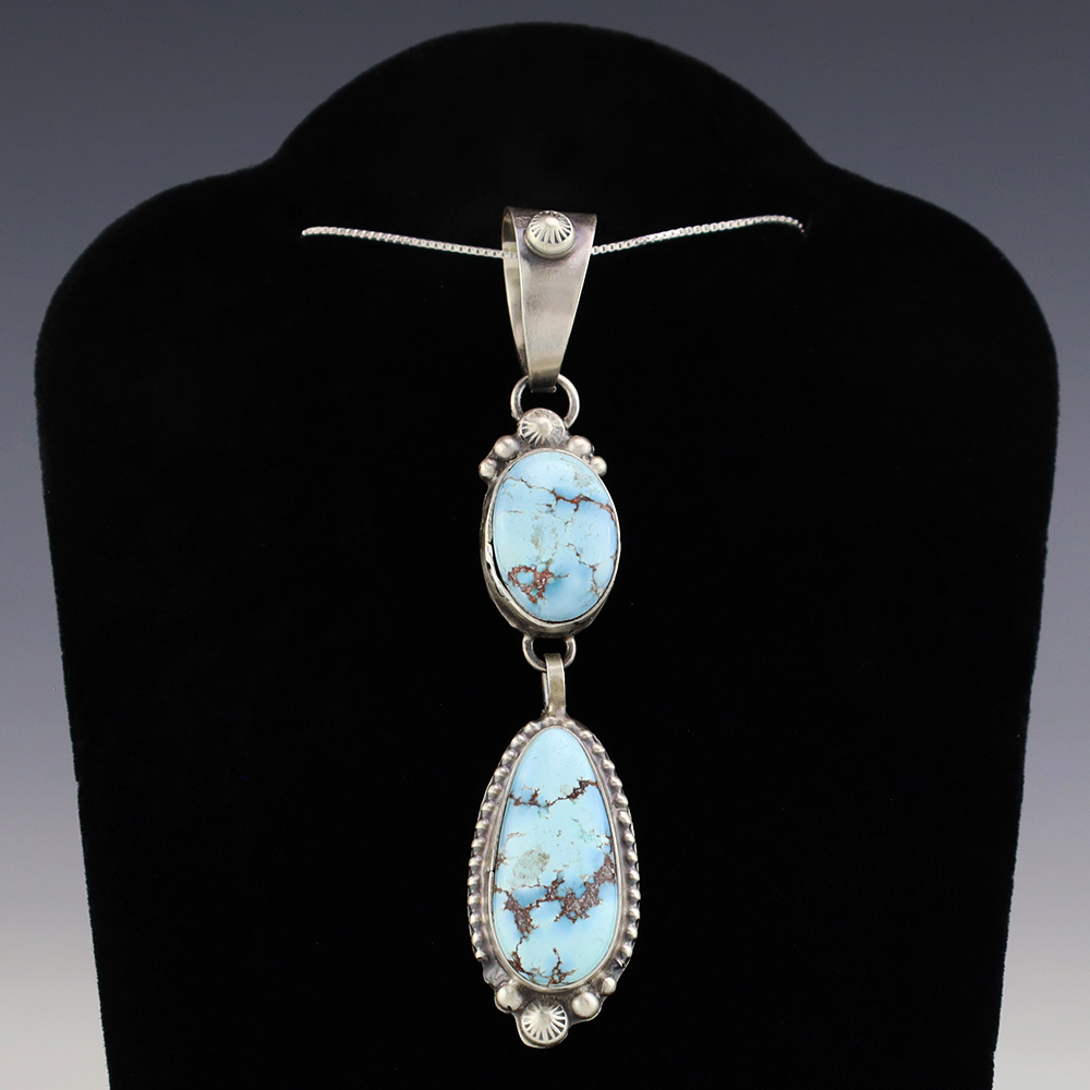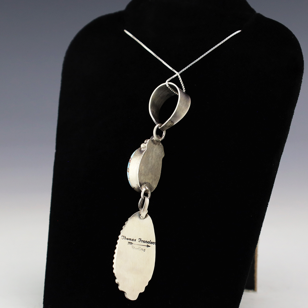 Great design! Navajo silversmith Thomas Francisco made this beautiful sterling silver and Golden Hills Turquoise pendant. A timeless beauty that you will enjoy for years to come. (Chain not included) Weighs 12 grams. Signed