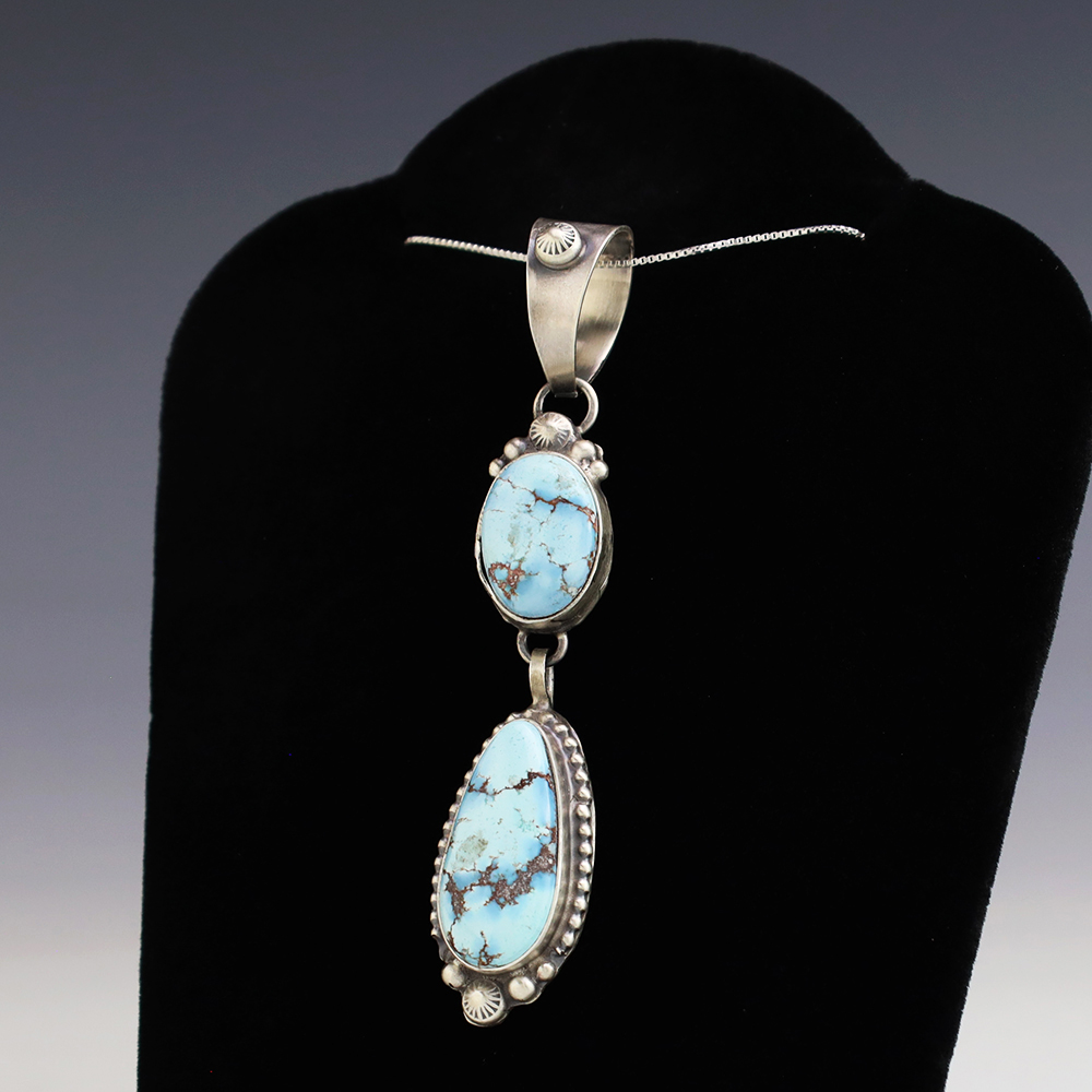 NATIVE AMERICAN NAVAJO STERLING SILVER & TURQUOISE NECKLACE BY GARY CUSTER