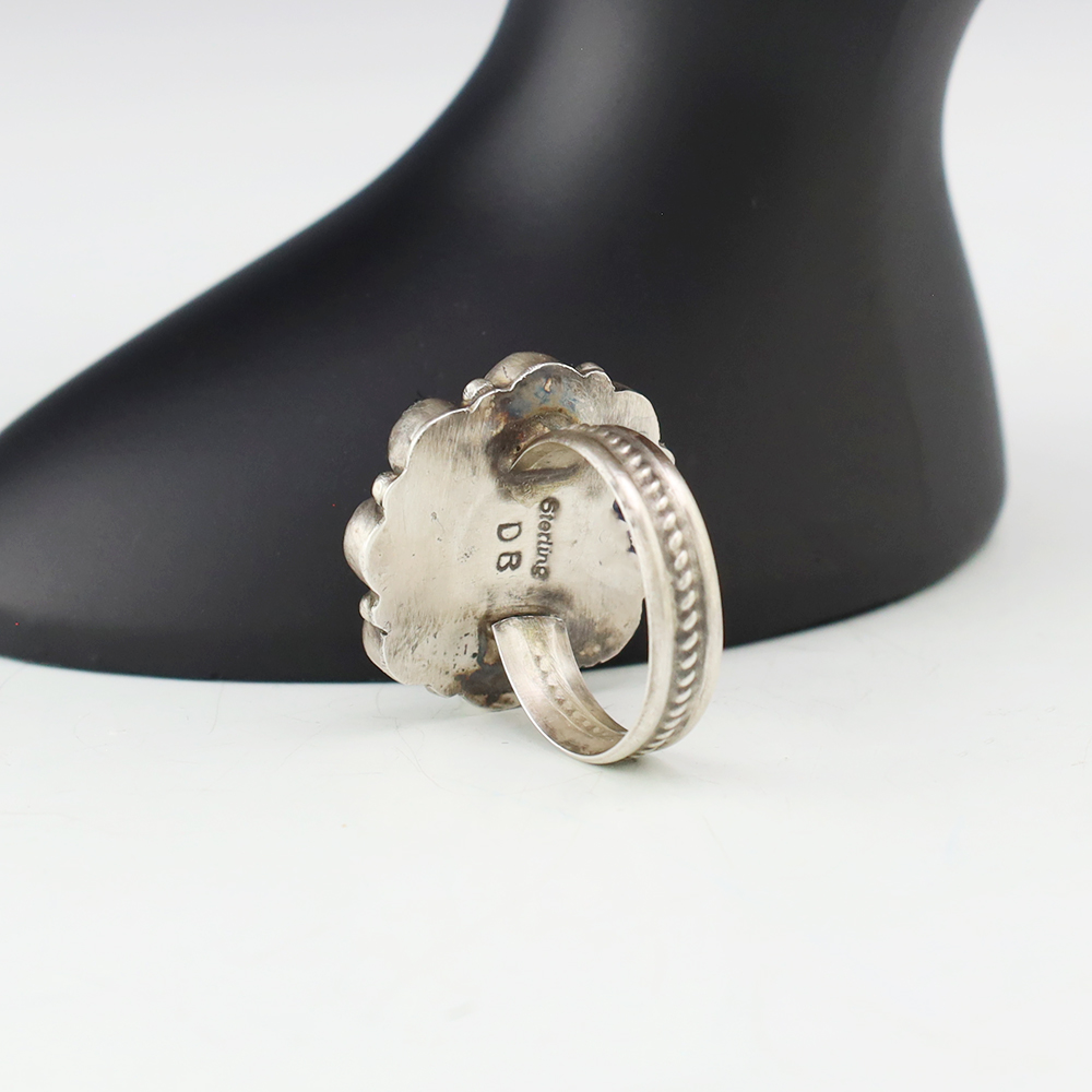 NATIVE AMERICAN TURQUOISE & JET RING BY NANCY & SHELDON WESTIKA 11 1/4
