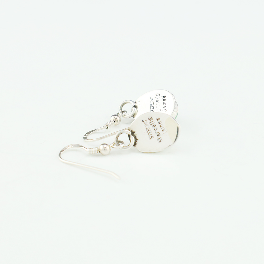 Lovely earrings hand made out of sterling silver and Sonoran Gold Turquoise by Navajo silversmith Marcella James. These wonderful earrings will become a versatile accessory in your jewelry collection. Weighs 4 grams. Signed