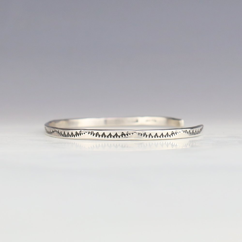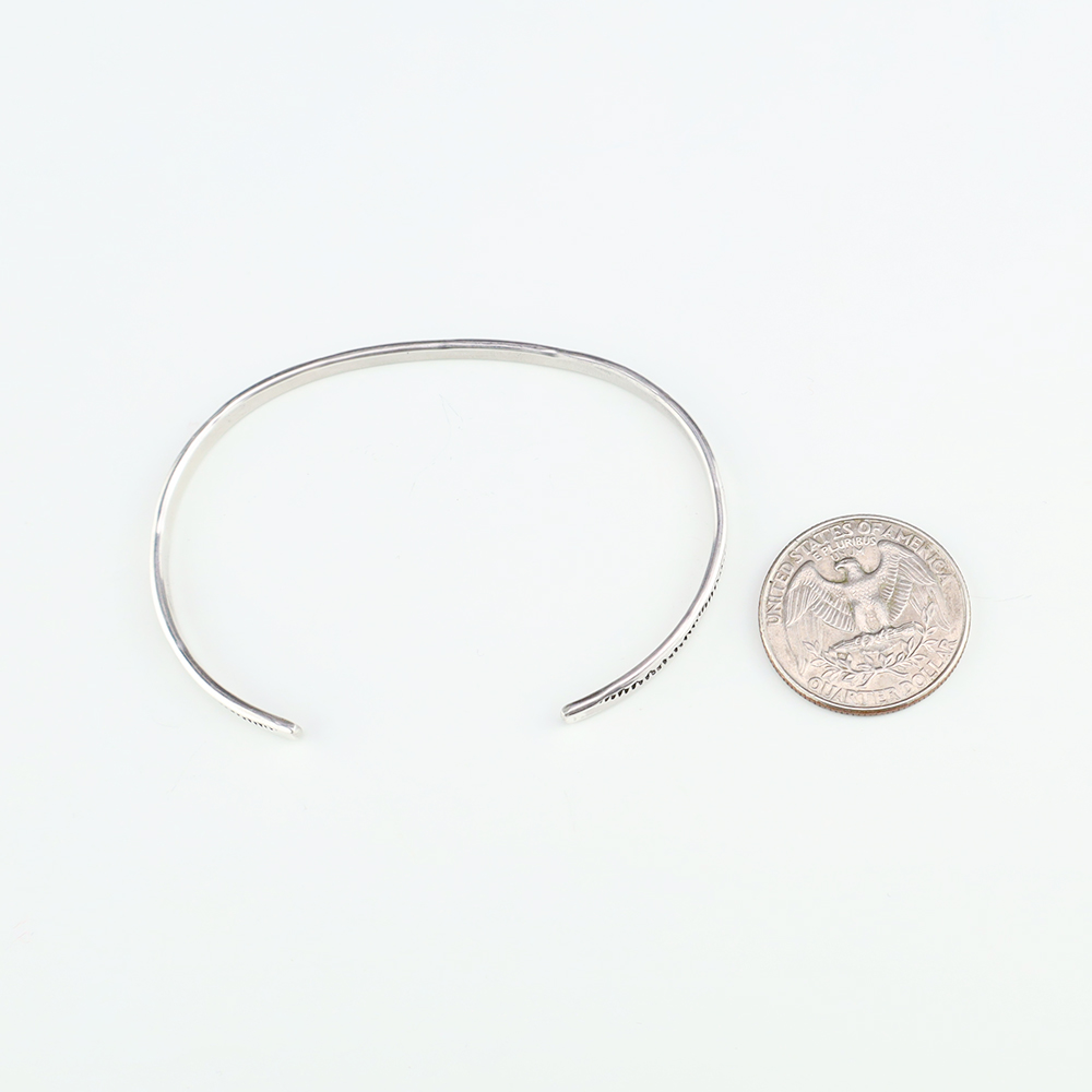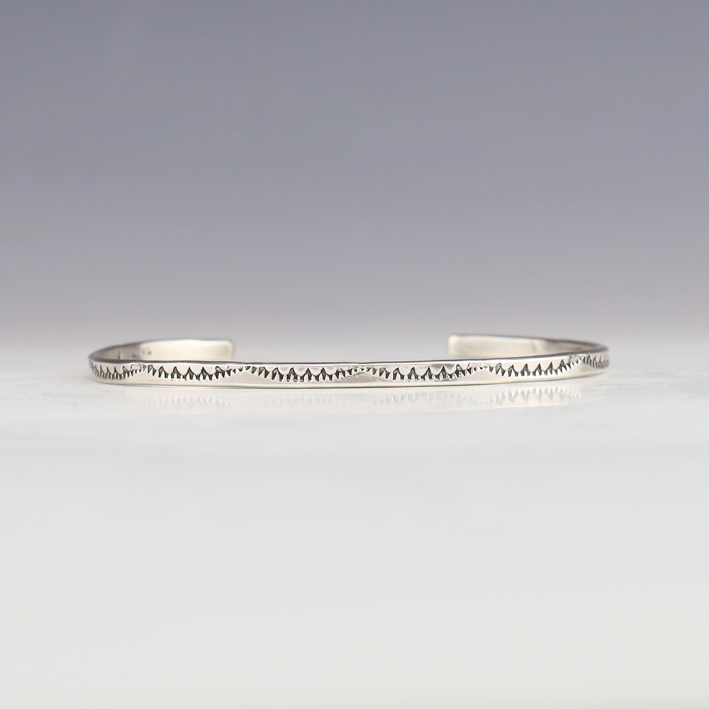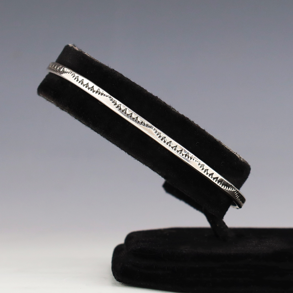 The Navajos began working with silver in the 19th century, and began making things like buckles, bridles, buttons, rings, canteens, hollow beads, earrings, crescent-shaped pendants (called “najas”), bracelets, crosses, powder chargers, tobacco canteens, and conchos (for belts). Their silversmithing skills has evolved and changed throughout the years, and in about 1880 Navajo silversmiths started to set turquoise in their silver work. Traditionally, Navajo artists worked with jewelry techniques like repousee and stamp work, but today they explored in other Native American jewelry making techniques like Zuni inlay work and Hopi overlay work
