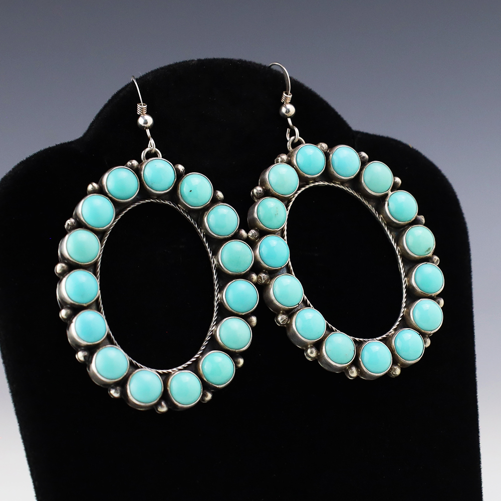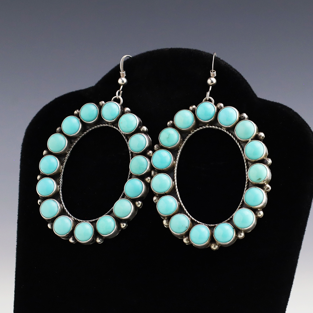 NATIVE AMERICAN ZUNI TURQUOISE EARRINGS BY NANCY & SHELDON WESTIKA