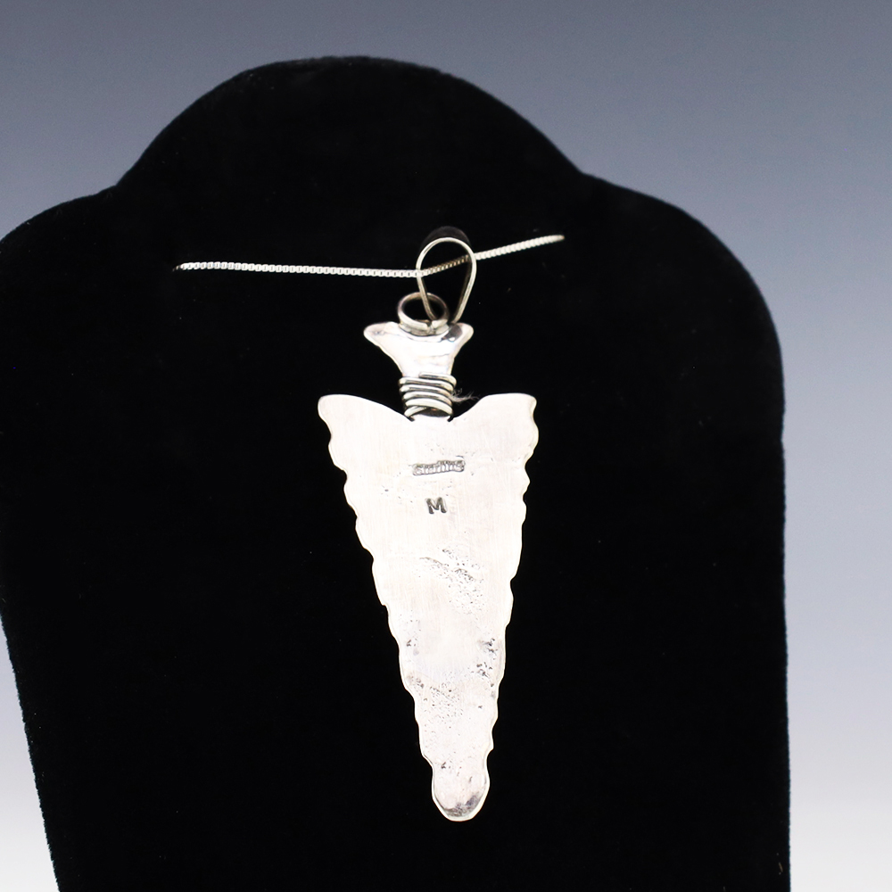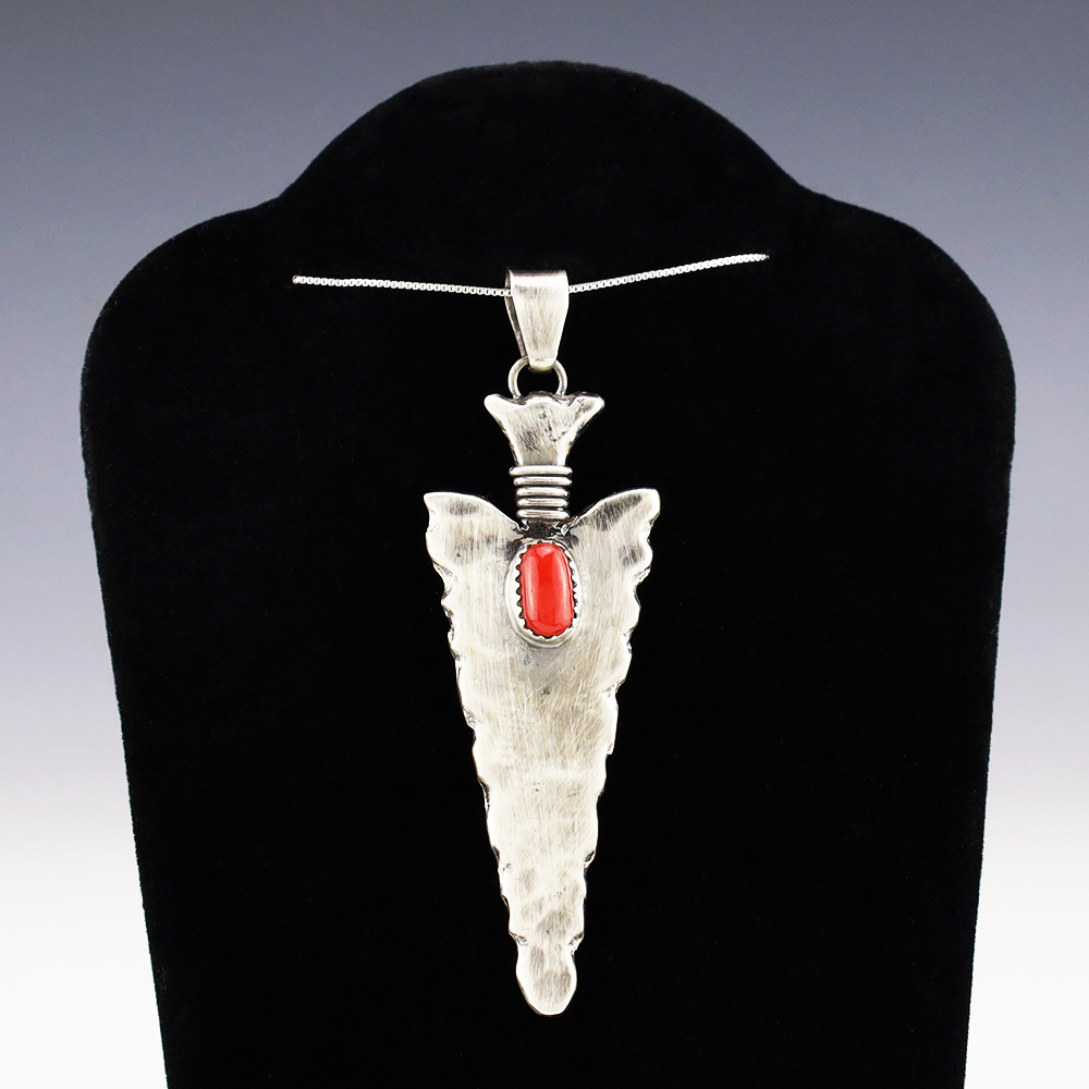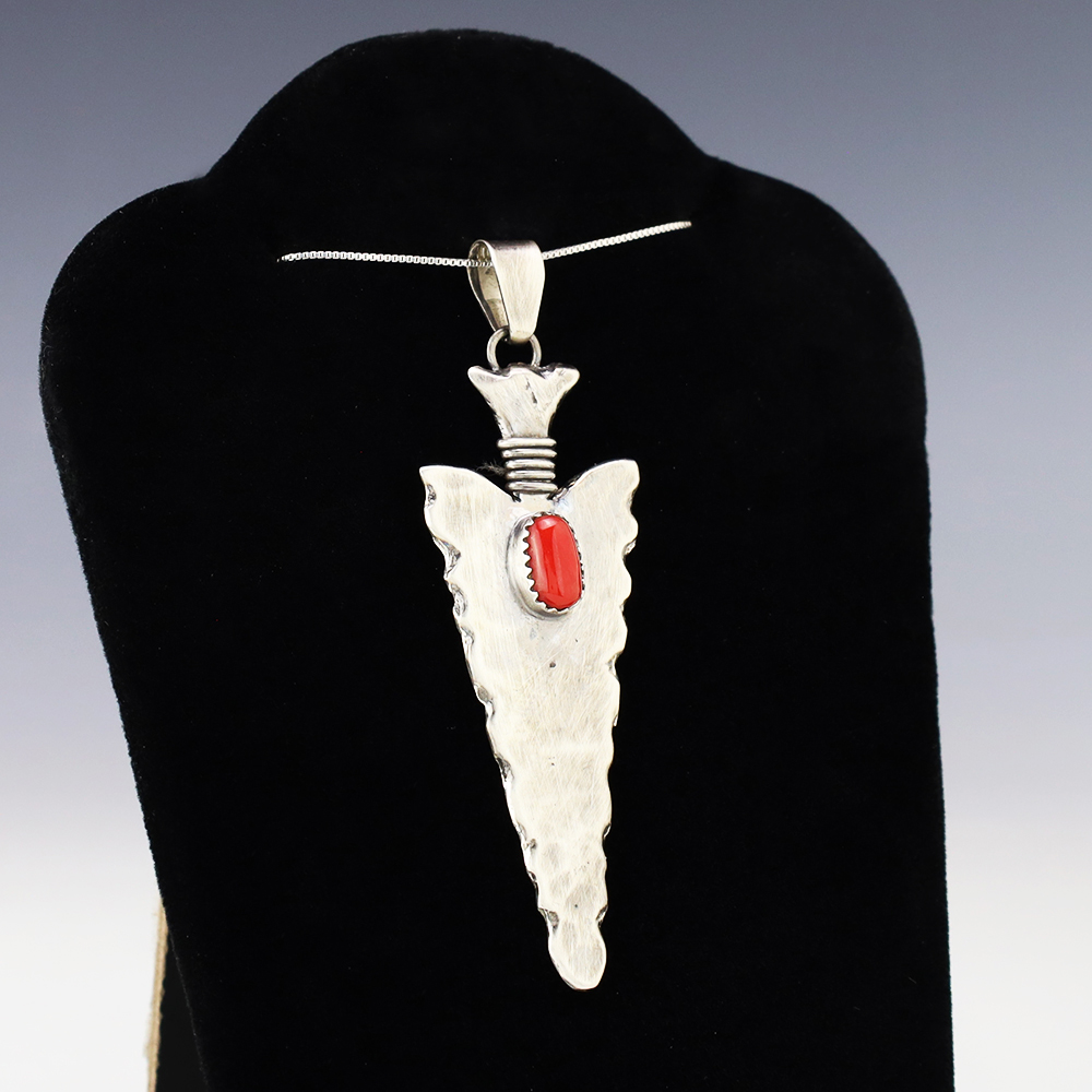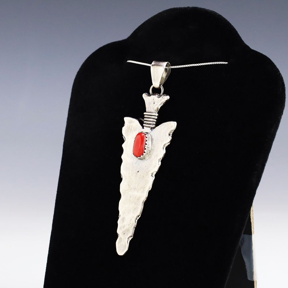 Navajo artist Mildred Parkhurst made this stellar Arrowhead pendant out of sterling silver and Coral. A timeless beauty that you will enjoy for years to come. Weighs 10 grams. Signed. (Chain not included)