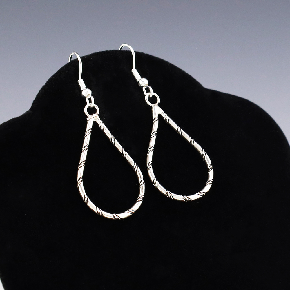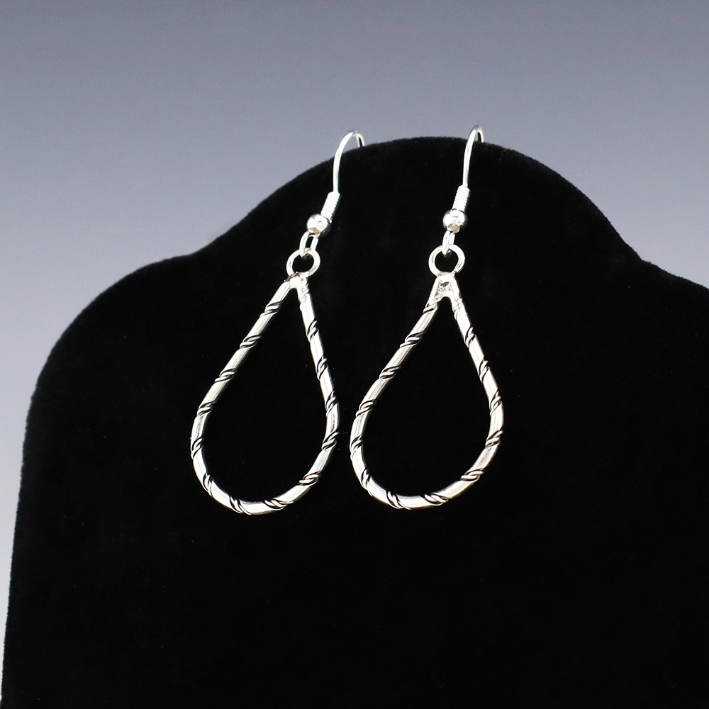 Lovely earrings hand made out of sterling silver. Hand made by Navajo silversmith Caroline Tsosie. These fabulous earrings will become a versatile accessory in your jewelry collection. Weighs 4 grams.