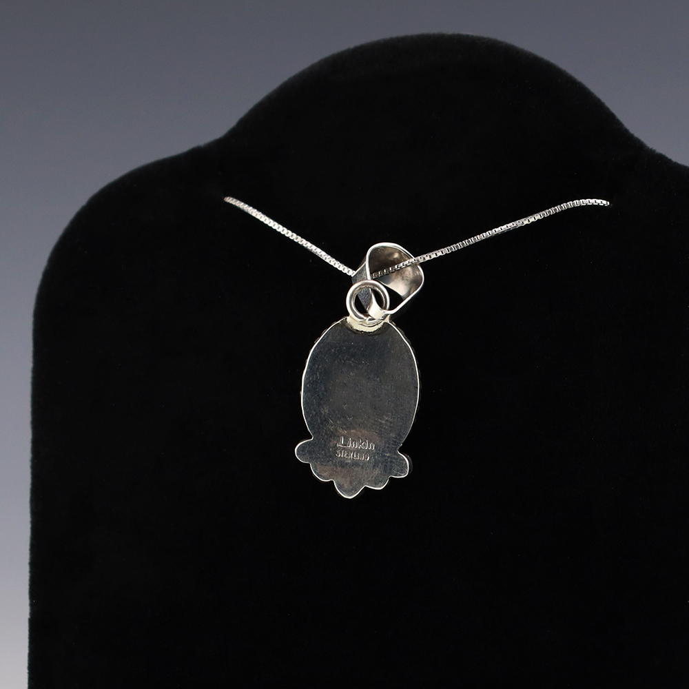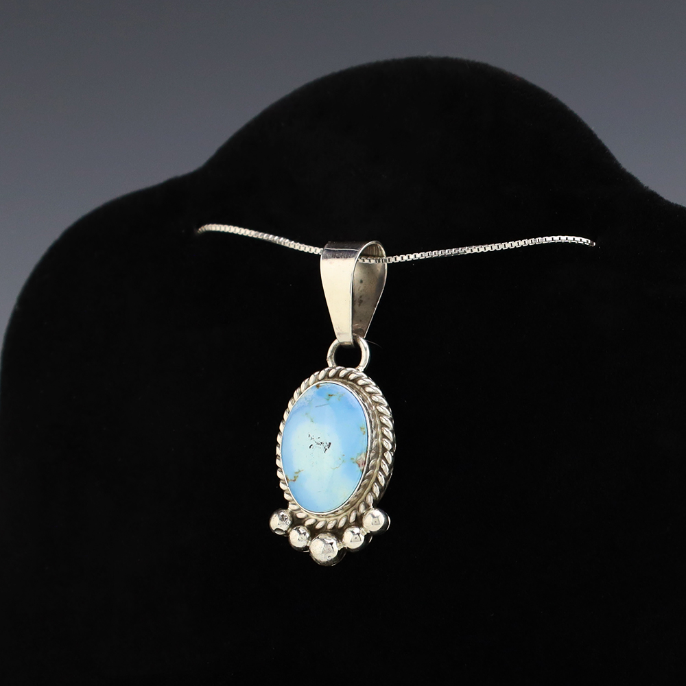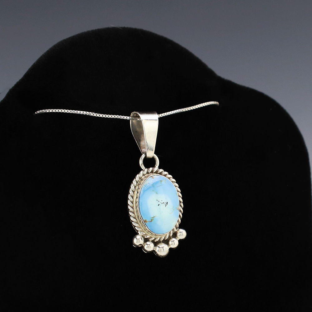 Lovely pendant hand made out of sterling silver and Golden Hills Turquoise by Navajo artist Ella Linkin. A timeless beauty that you will enjoy for years to come. Weighs 4 grams. Signed (Chain not included)