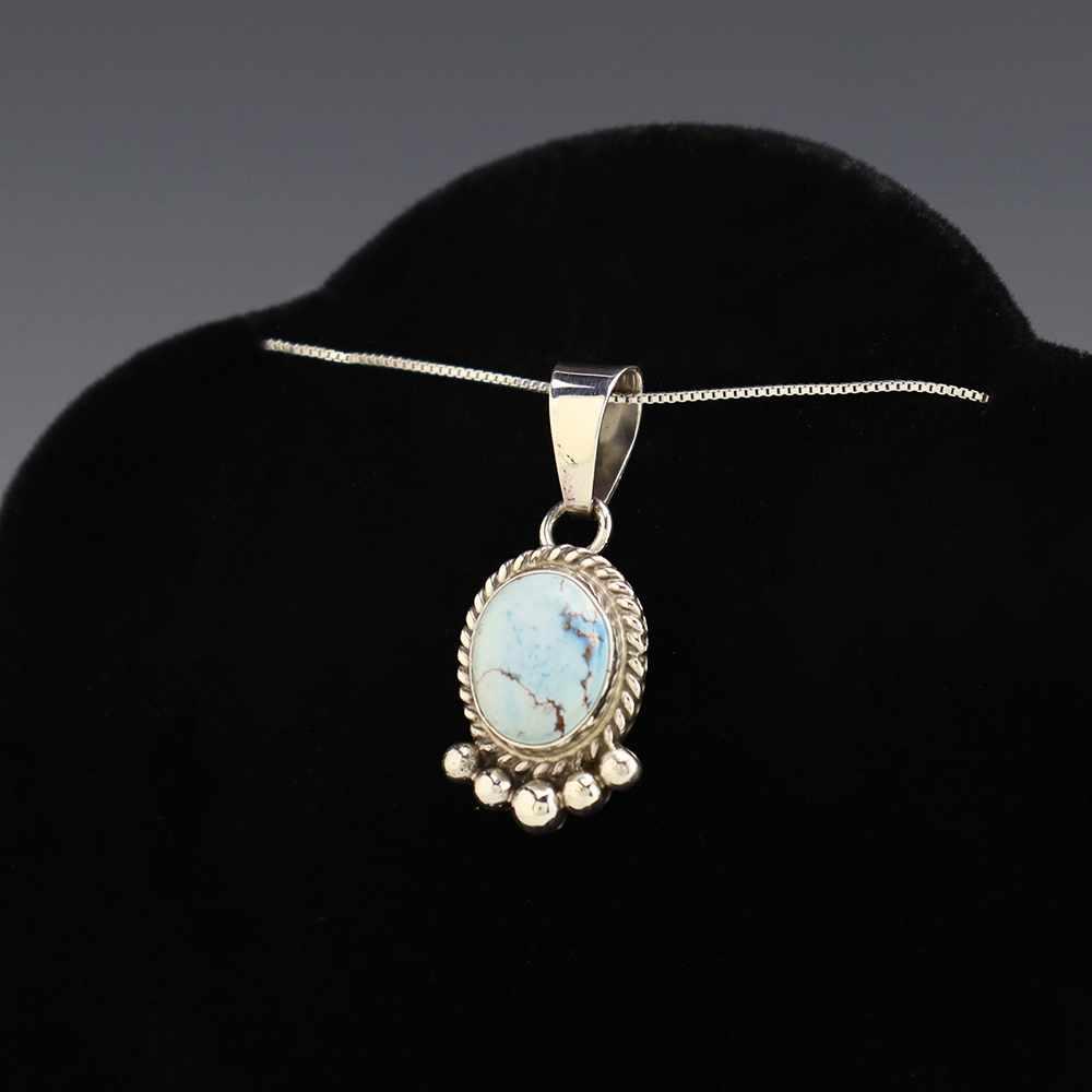 Lovely pendant hand made out of sterling silver and Golden Hills Turquoise by Navajo artist Ella Linkin. A timeless beauty that you will enjoy for years to come. Weighs 4 grams. Signed (Chain not included)