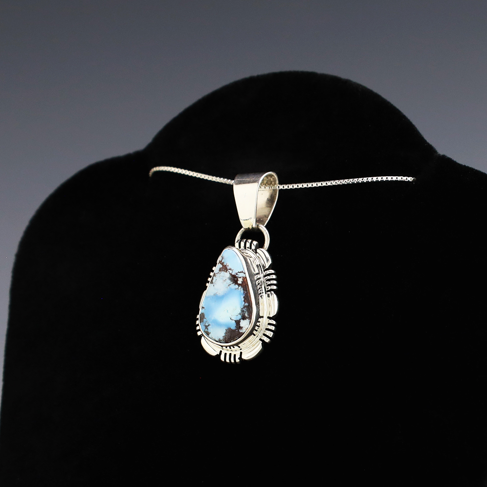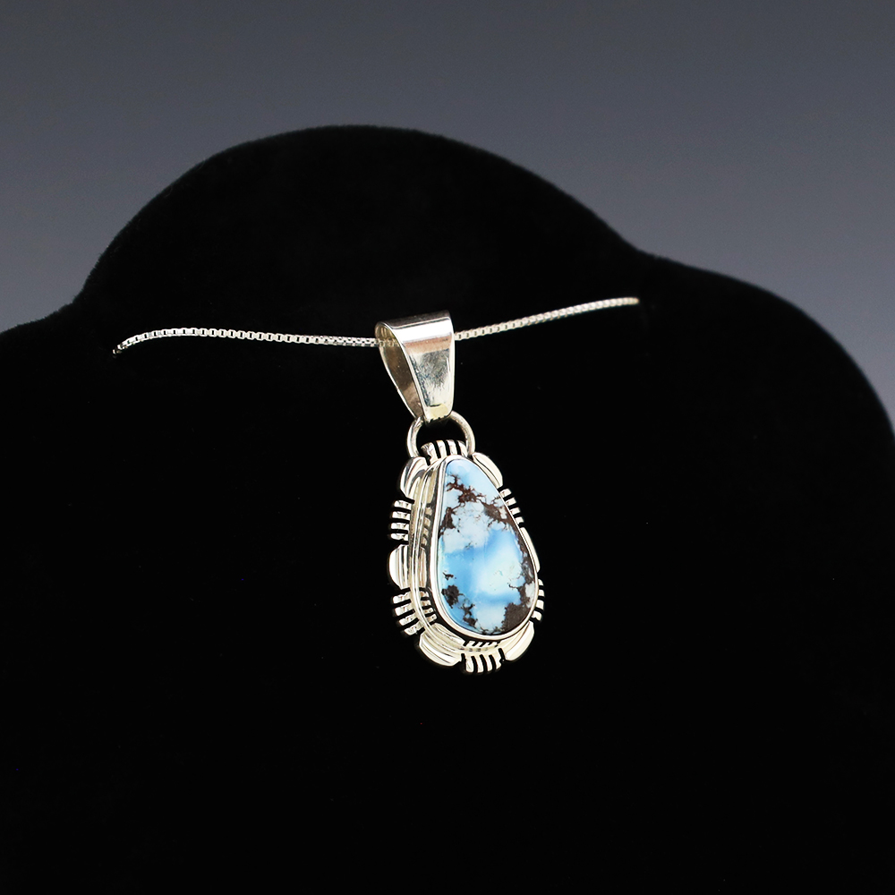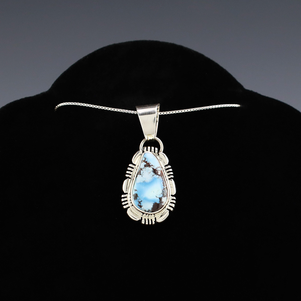Beautiful pendant hand made out of sterling silver and Golden Hills Turquoise by Navajo artist Norvin Johnson. A timeless beauty that you will enjoy for years to come. Weighs 4 grams. Signed (Chain not included)