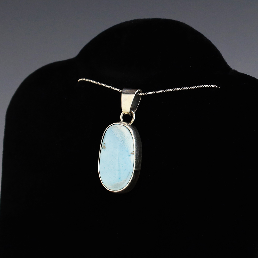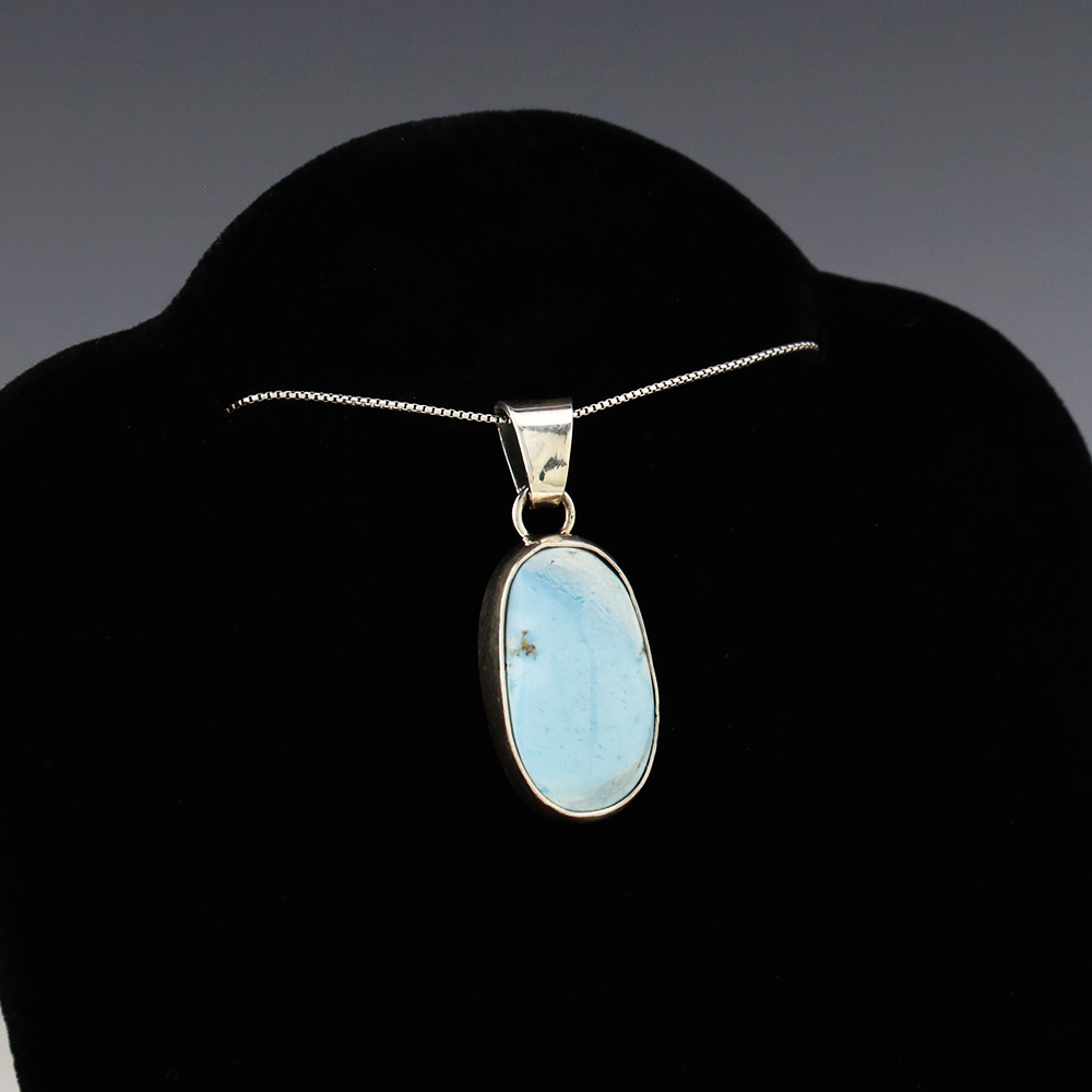 Lovely pendant hand made out of sterling silver and Golden Hills Turquoise. A timeless beauty that you will enjoy for years to come. Weighs 6 grams. Signed (Chain not included)