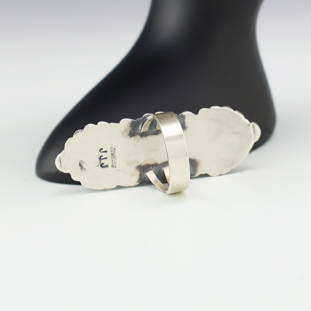 NATIVE AMERICAN TURQUOISE & JET RING BY NANCY & SHELDON WESTIKA 11 1/4