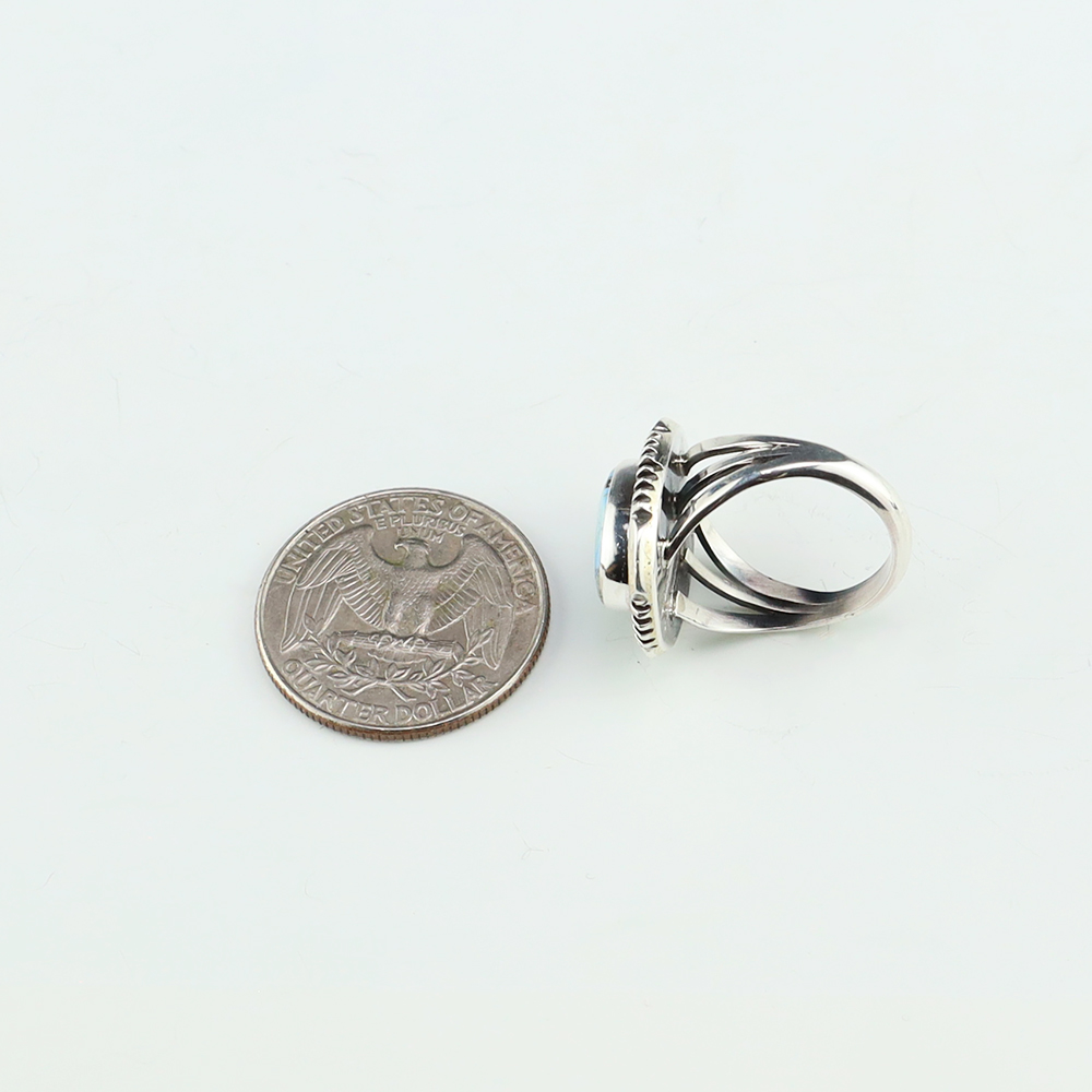 NATIVE AMERICAN TURQUOISE & JET RING BY NANCY & SHELDON WESTIKA 11 1/4