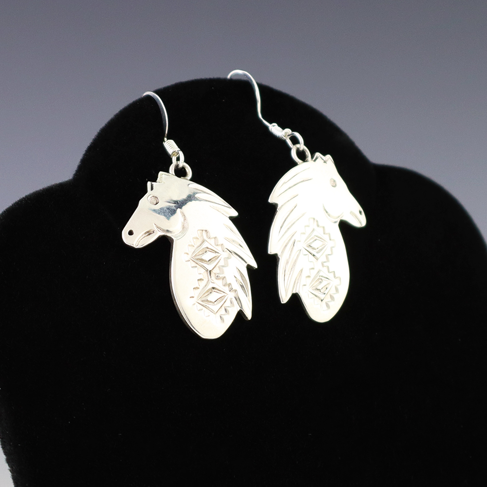 The Navajos began working with silver in the 19th century, and began making things like buckles, bridles, buttons, rings, canteens, hollow beads, earrings, crescent-shaped pendants (called “najas”), bracelets, crosses, powder chargers, tobacco canteens, and conchos (for belts). Their silversmithing skills has evolved and changed throughout the years, and in about 1880 Navajo silversmiths started to set turquoise in their silver work. Traditionally, Navajo artists worked with jewelry techniques like repousee and stamp work, but today they explored in other Native American jewelry making techniques like Zuni inlay work and Hopi overlay work.