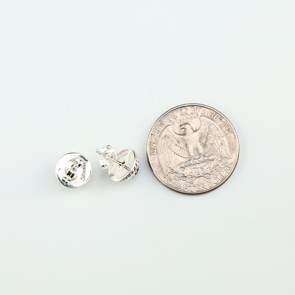 Outstanding sterling silver earrings with Mother of Pearl Shell and Turquoise inlay. Hand crafted by Zuni jewelry makers, Nancy and Sheldon Westika. The Westikas have been making jewelry since the 1970’s and they are known for their fine inlay work. Weighs 6 grams. Signed 7/8” wide x 7/8” tall 1 ...