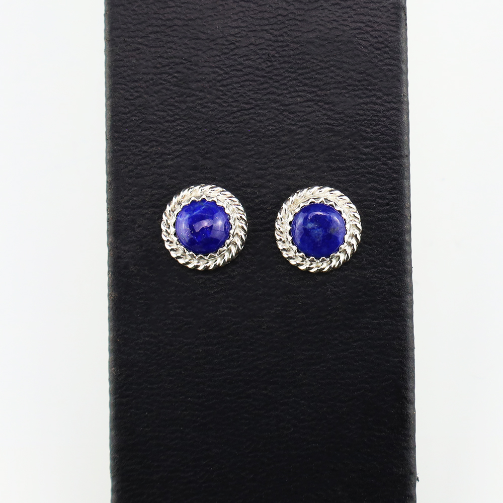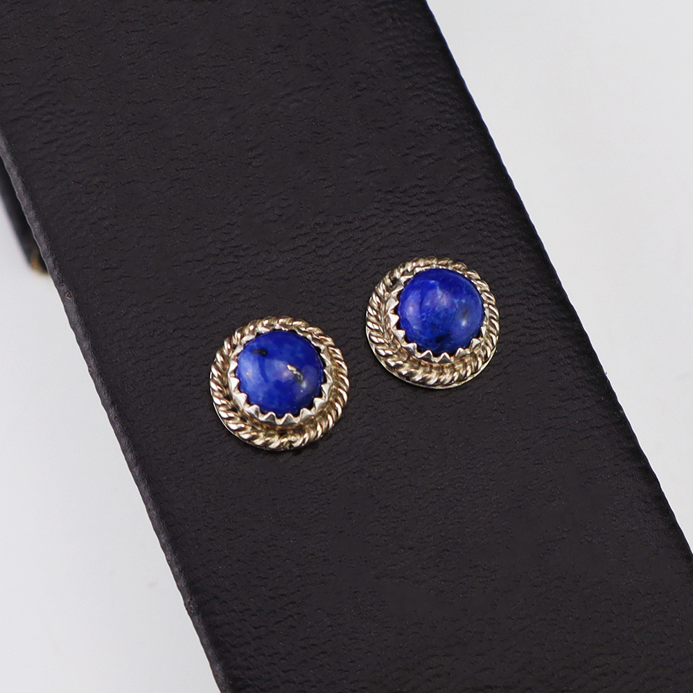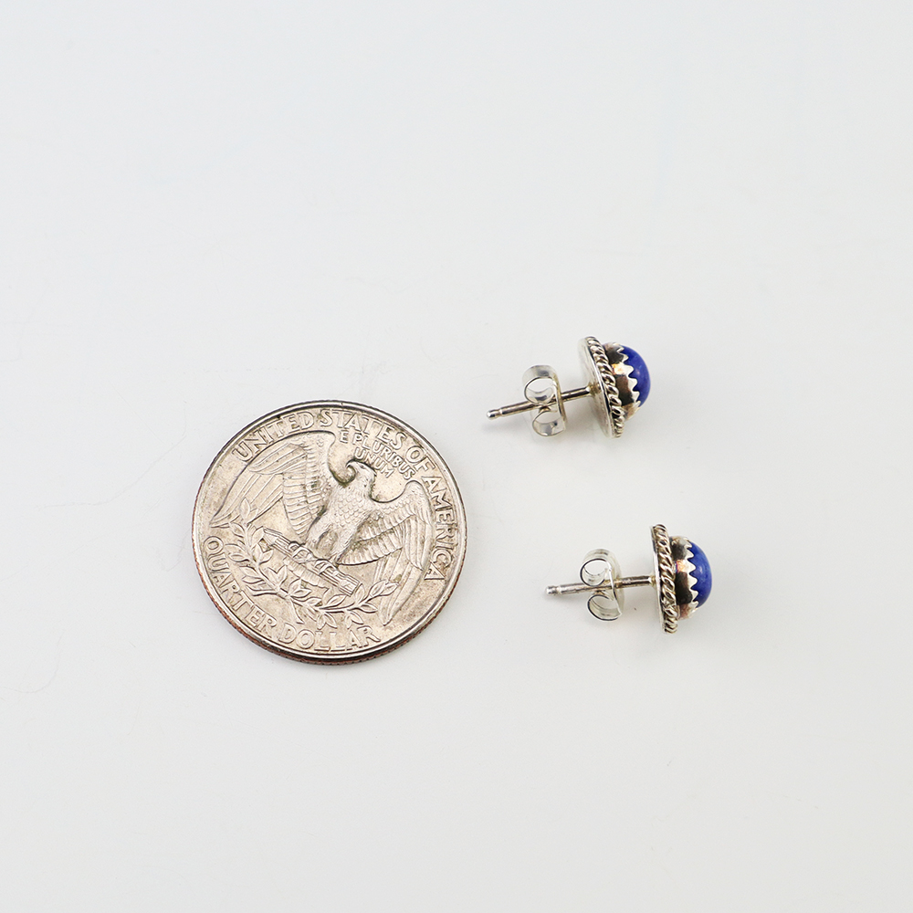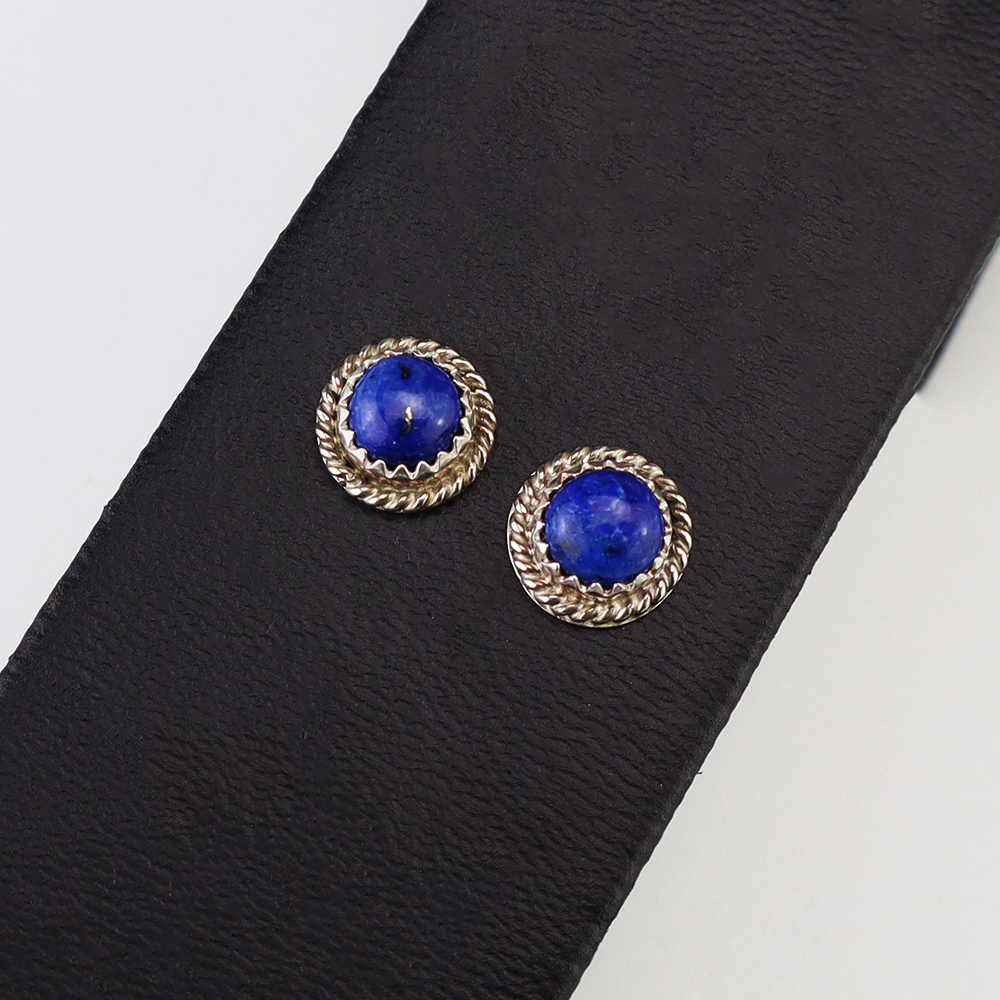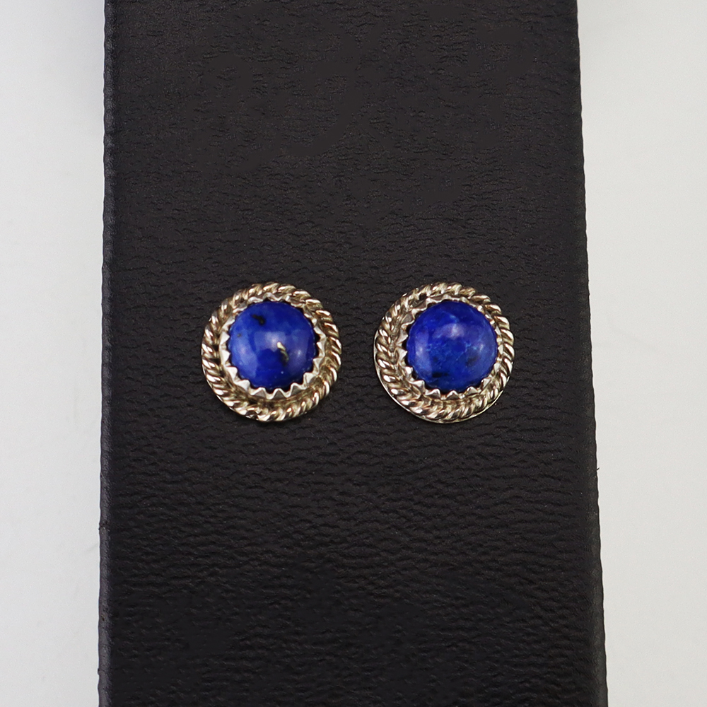 Lovely earrings hand made out of sterling silver and Lapis by Navajo silversmith Theresa Kinsel. These wonderful earrings will become a versatile accessory in your jewelry collection.