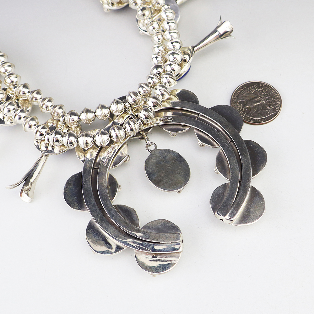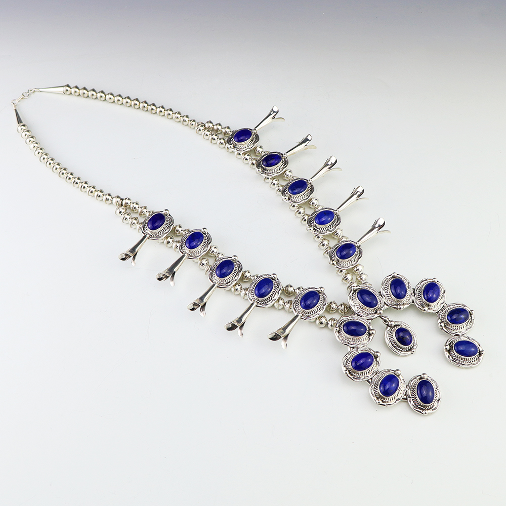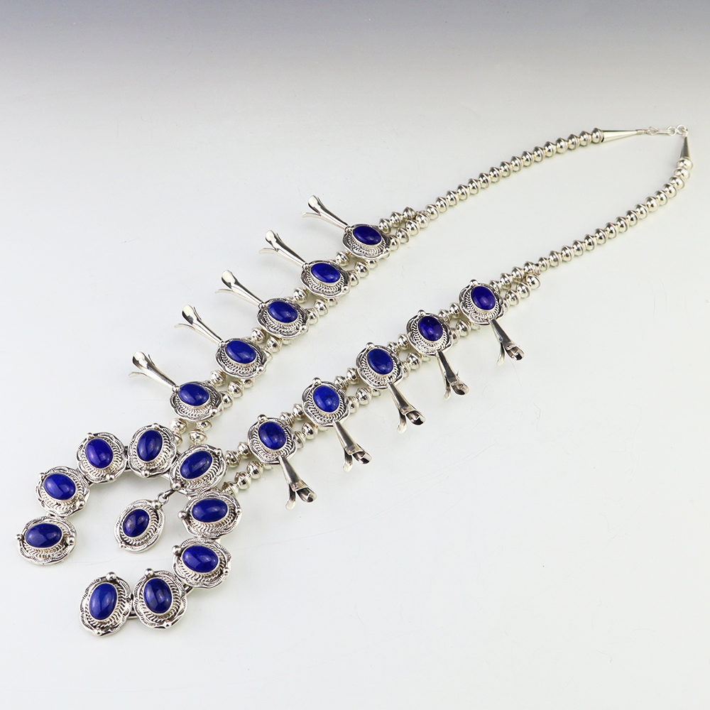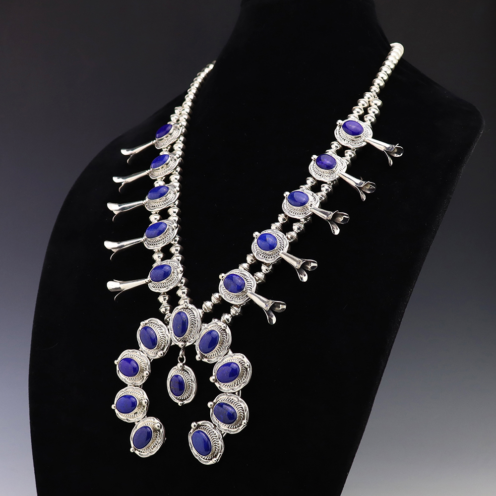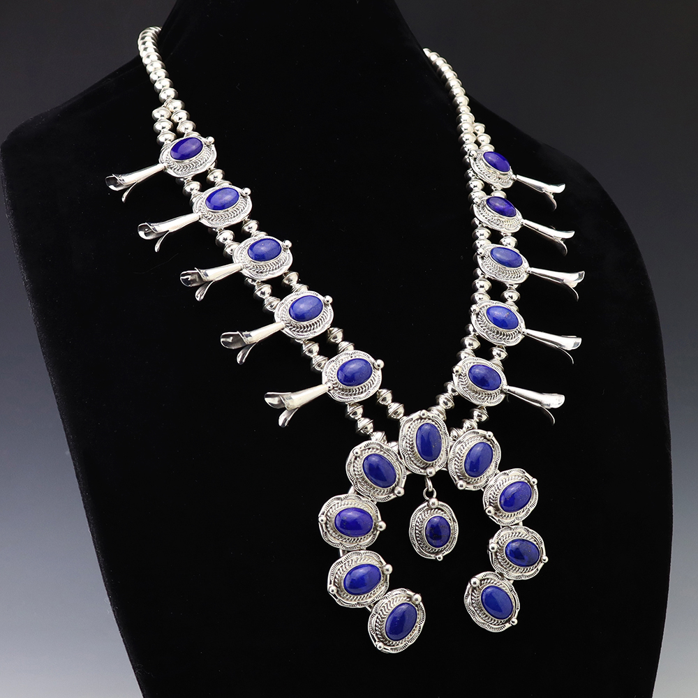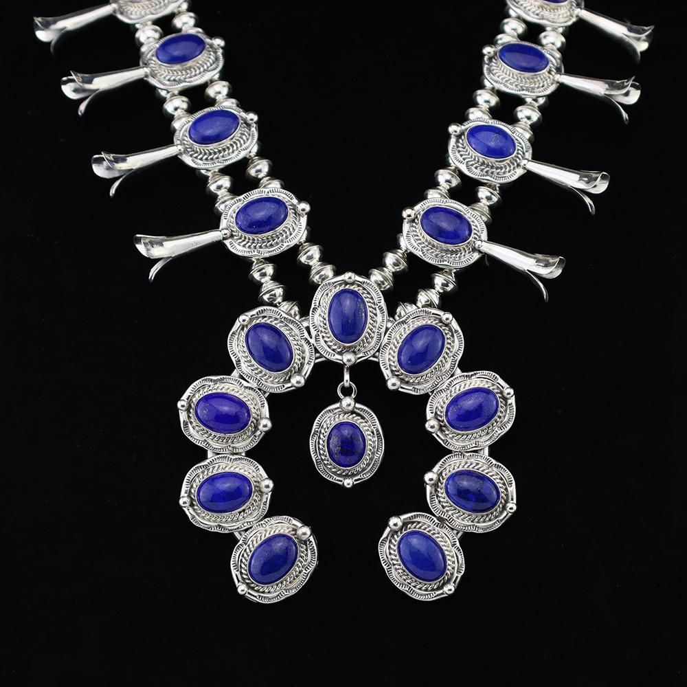 The Navajos began working with silver in the 19th century, and began making things like buckles, bridles, buttons, rings, canteens, hollow beads, earrings, crescent-shaped pendants (called “najas”), bracelets, crosses, powder chargers, tobacco canteens, and conchos (for belts). Their silversmithing skills has evolved and changed throughout the years, and in about 1880 Navajo silversmiths started to set turquoise in their silver work. Traditionally, Navajo artists worked with jewelry techniques like repousee and stamp work, but today they explored in other Native American jewelry making techniques like Zuni inlay work and Hopi overlay work.