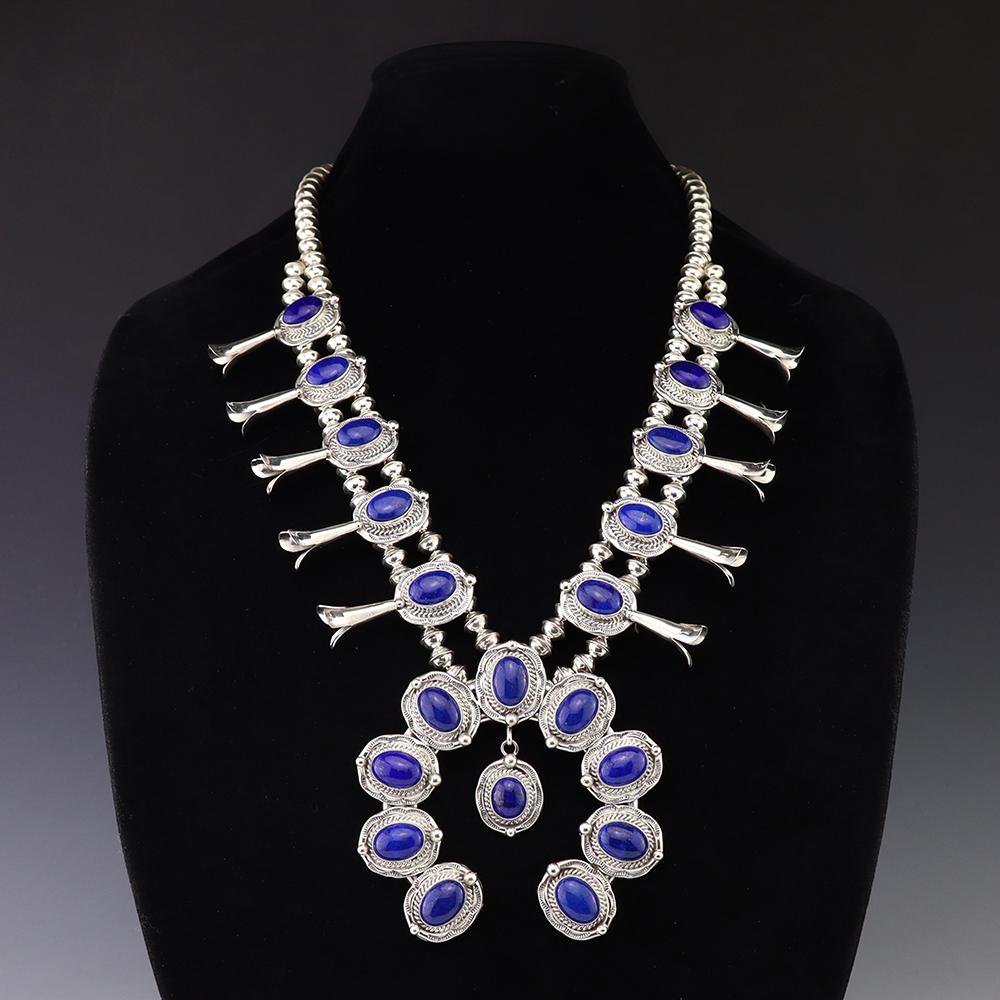 The Navajos began working with silver in the 19th century, and began making things like buckles, bridles, buttons, rings, canteens, hollow beads, earrings, crescent-shaped pendants (called “najas”), bracelets, crosses, powder chargers, tobacco canteens, and conchos (for belts). Their silversmithing skills has evolved and changed throughout the years, and in about 1880 Navajo silversmiths started to set turquoise in their silver work. Traditionally, Navajo artists worked with jewelry techniques like repousee and stamp work, but today they explored in other Native American jewelry making techniques like Zuni inlay work and Hopi overlay work.