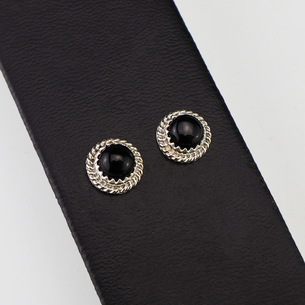 Lovely earrings hand made out of sterling silver and Onyx by Navajo silversmith Theresa Kinsel. These wonderful earrings will become a versatile accessory in your jewelry collection.